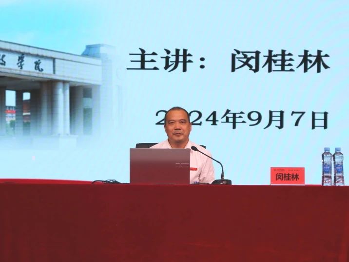 江科网讯(通讯员 唐喜龙)9月7日,2024级新生“实践教育”专题讲座在蓝海大剧场举行。校党委副书记、副校长闵桂林为同学们作专题报告,讲授新学期“开学第一课”。