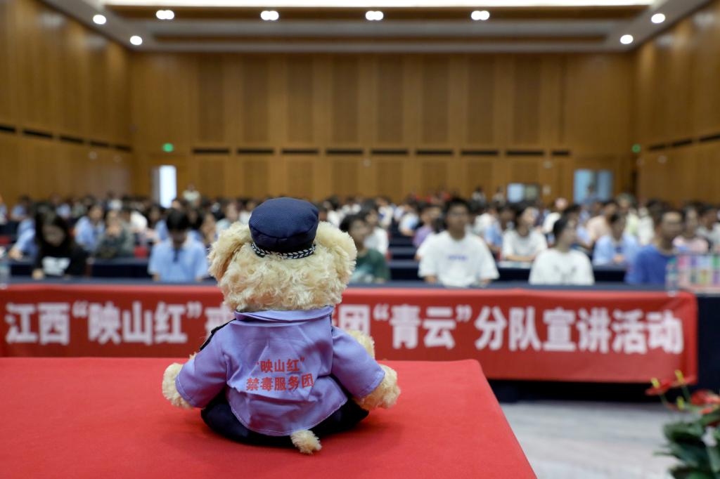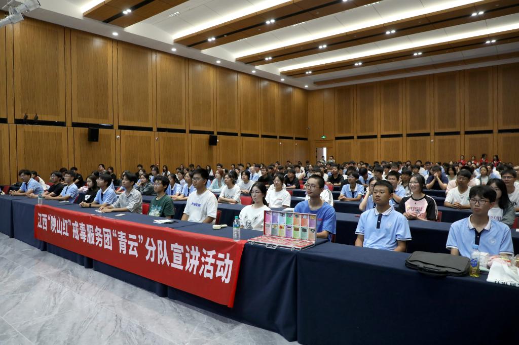 江科网讯(记者 何强江)为引导同学们增强毒品的自我保护意识和抵制诱惑能力,以法治力量筑牢青少年保护“防火墙”,9月5日,江西“映山红”戒毒服务团青云分队走进我校,为刚刚步入象牙塔的300多名大一新生开展以“莫让‘雾霾’染青春、共护成长不‘毒’行”为主题的禁毒宣传活动。