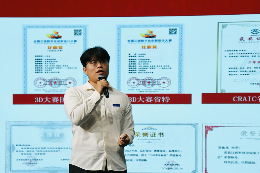 “校院领导组建两级助盲团,全力以赴帮助我解决学习生活中遇到的难题。学院电梯加上了盲文和语音报层、把纸质教材扫描成电子文本,老师和同学们课后帮助我巩固难点,鼓励我多上台多实践。现在的我课程平均分87,顺利完成团内推优,距离加入党组织又近一步。遇到困难时,我会一遍又一遍诵读《相信未来》,找回我丢失的力量……”全省最美大学生、学校第二届“身边的力量”宣讲团成员黄镇宇结合在江科的学习生活经历,鼓励2024级新同学要珍惜更为优越的学习条件,做堪当民族复兴大任的时代新人,做新时代自信自强自立的江科青年,做贡献社会的一束光。