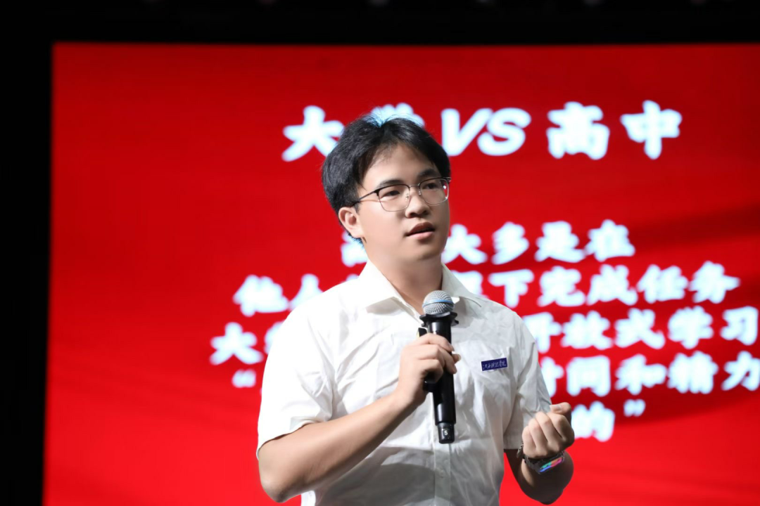 “过去的两年里,我也曾经历过无数次的焦虑与迷茫,在学科竞赛中焦虑,在人生规划上迷失,但成功本就不是一蹴而就,可贵的是积极向上、敢于面对困难的人生态度……”宣讲团成员江帆以“行稳致远,进而有为”为题,从“认识自己、做好规划”“摆脱懒惰、坚持学习”“参与实践、发光发热”等三方面鼓励2024级新同学合理规划大学生活。