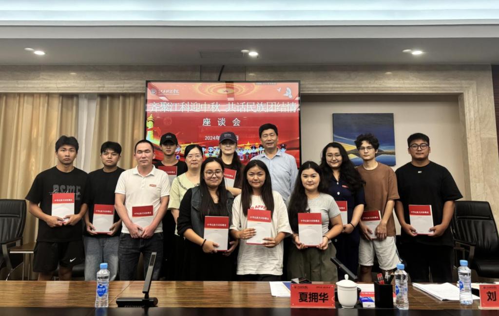 江科网讯(通讯员 王颖)为促进各民族交往交流交融,推动铸牢中华民族共同体意识走深走实,9月14日上午,我校统战部与关工委在行政楼南一楼第三会议室共同举办“齐聚江科迎中秋 共话民族团结情”座谈会。校党委副书记、纪委书记夏拥华,“石榴籽之家”工作室教师代表哈孜别克·阿不都沙拉木、白尔娜依·哈力木热提与来自维吾尔族、哈萨克族、藏族、柯尔克孜族、畲族、汉族等民族的学生代表一起参加座谈会。座谈会由统战部部长刘瑛主持。