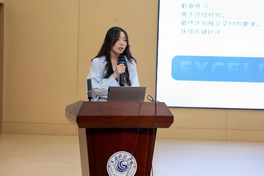 宋军伟副校长在讲话中对电商产业学院的办学成果给予高度肯定,并对未来的发展寄予厚望;朱靖总监详细介绍宝尊电商的基本情况;殷明总监对电商产业学院的运营情况进行深入介绍;钱莺经理介绍集团新青年项目;李青先生总结暑期实习工作,与会领导为优秀员工颁奖;学生代表夏璐分享自己进入电商产业学院一年来的成长历程。