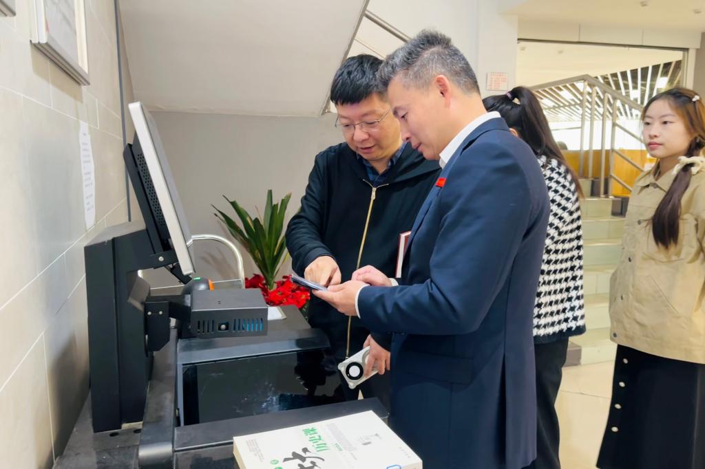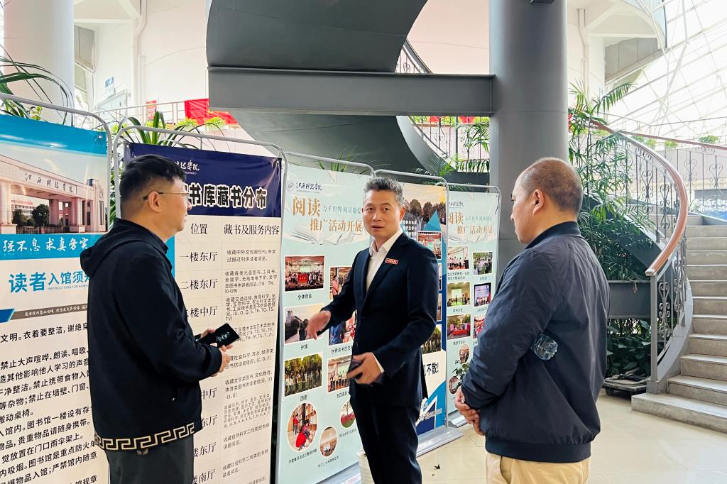 调研过程中,周冰冰副校长认真听取有关工作汇报,详细了解图书馆藏书分布、借阅流程、阅读活动、数字资源、创新服务等方面的整体工作情况。他实地走访了解自习室分布和同学们学习情况,现场体验图书馆的现代化设备,了解现代化阅读方式,并现场借阅馆藏书籍,对自由阅读区内同学们或埋头苦读、或轻声讨论问题等浓厚的学习氛围点赞。