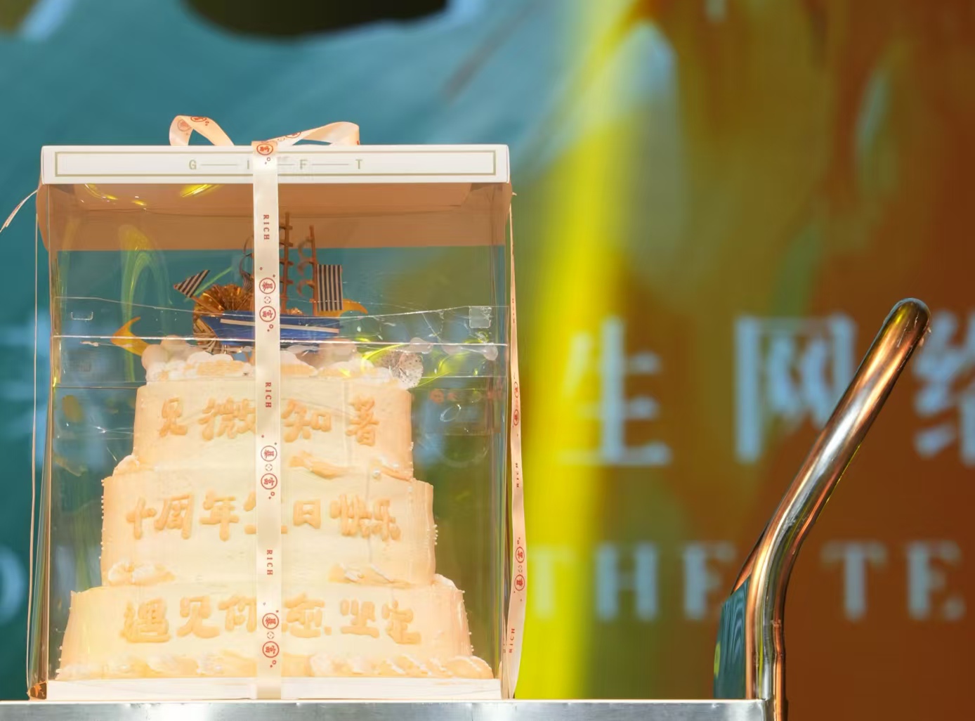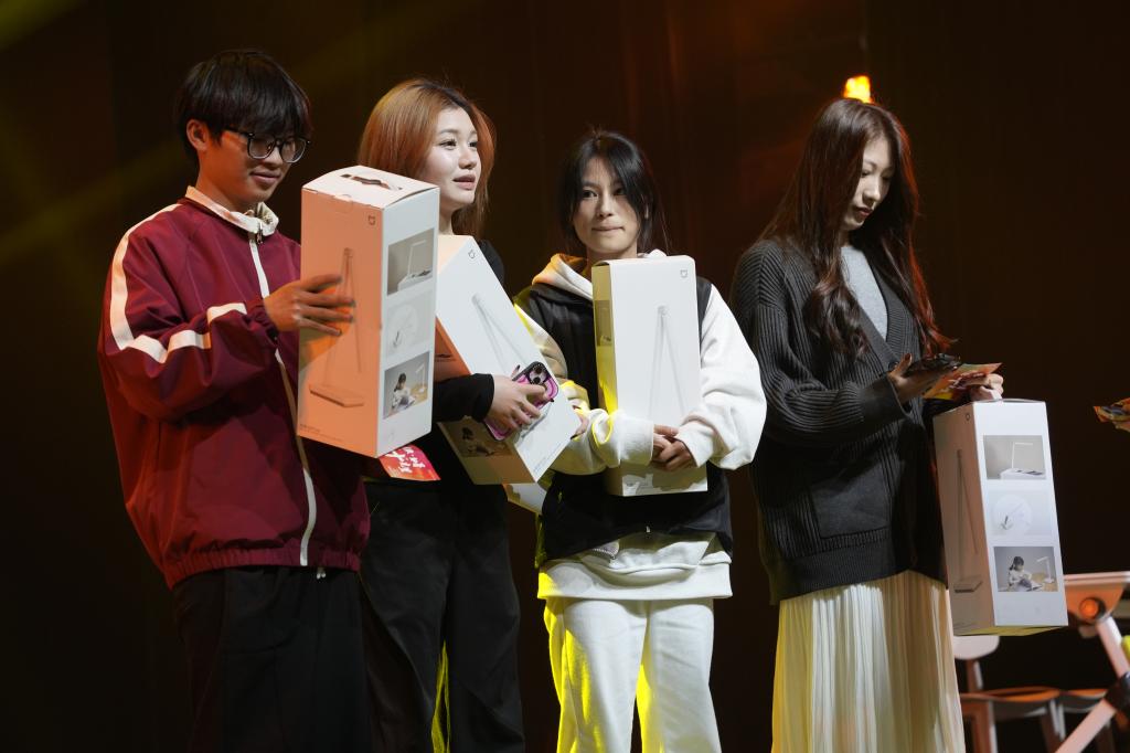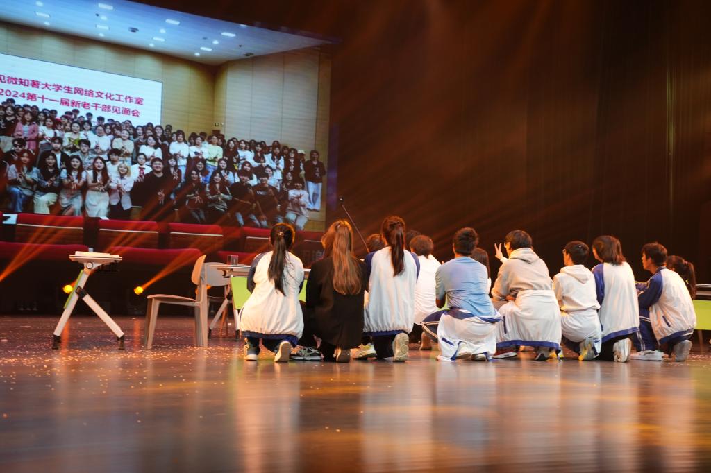 在出席活动的领导嘉宾为工作室第十一届成员代表佩戴“小V”徽章后,随着全场观众的倒计时声,第三篇章《向未来》——晚会演出正式拉开帷幕。《像你这样的朋友》《破浪》《时间都去哪了》《稻香》《走秀》《被子舞、荧光棒舞、家有儿女等串烧》《天若有情》《汉服社走秀》《谁在拖延呢》《apt“GGbond”‘Forever’串烧》《与妻书》《我们的时光》等一个个歌曲演唱、舞蹈串烧、话剧演出、模特走秀及小品表演节目轮番精彩上演,展现工作室成员们的热情与才华。晚会过程中,抽奖环节穿插其中,将现场气氛推向高潮。最终,当工作室十周年纪念蛋糕推至舞台中央,全场唱起生日快乐歌,为工作室送上最诚挚的祝福。