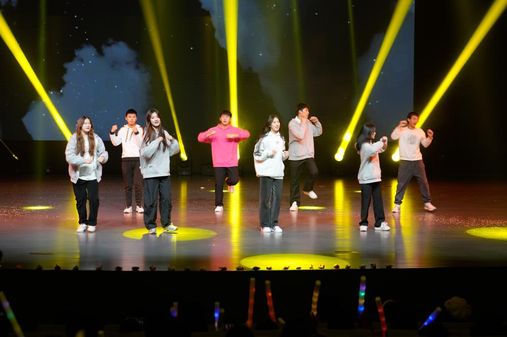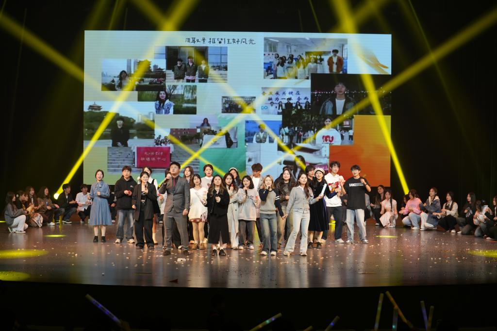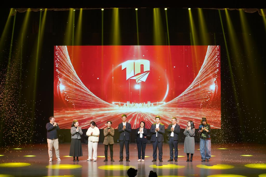晚会分“启程”“发轫”“向未来”三个篇章。启程篇中,通过一段10分钟的VCR短片回顾了工作室十年来的珍贵瞬间,带领大家重温了往昔的温馨点滴。“从无到有、从小到大、从大到优,工作室经过一届届成员的努力和付出,成为讲述江科好故事、传递江科好声音的主阵地,搭建起记录青春绽放的好平台。”进入发轫篇,郭月芳首先致辞。她表示,工作室的同学承担起各项宣传任务,在教育教学、校园生活、文体竞赛等工作中,始终冲在第一线,与学校同频共振、与师生同向同行。她希望全校新媒体工作者要坚持导向为魂,自觉承担起巩固壮大主流思想文化之责;要坚持创新为要,在思考与交流中碰撞新火花,发现青春别样的风采;要坚持内容为王,书写建设特色鲜明、国内领先的应用型民办本科高校的意气风发。马孙亮在致辞中分享了自己与工作室的浓厚情谊。他说,工作室十年来,离不开每一位成员的辛勤付出。同学们展现出的团队协作精神、坚韧不拔的毅力和对品质的执着追求,是工作室最为宝贵的财富。下一个十年,是充满希望与挑战的十年,也是需要所有小V继续拼搏奋进的十年。最后,他表达了对工作室的美好祝福。