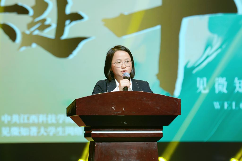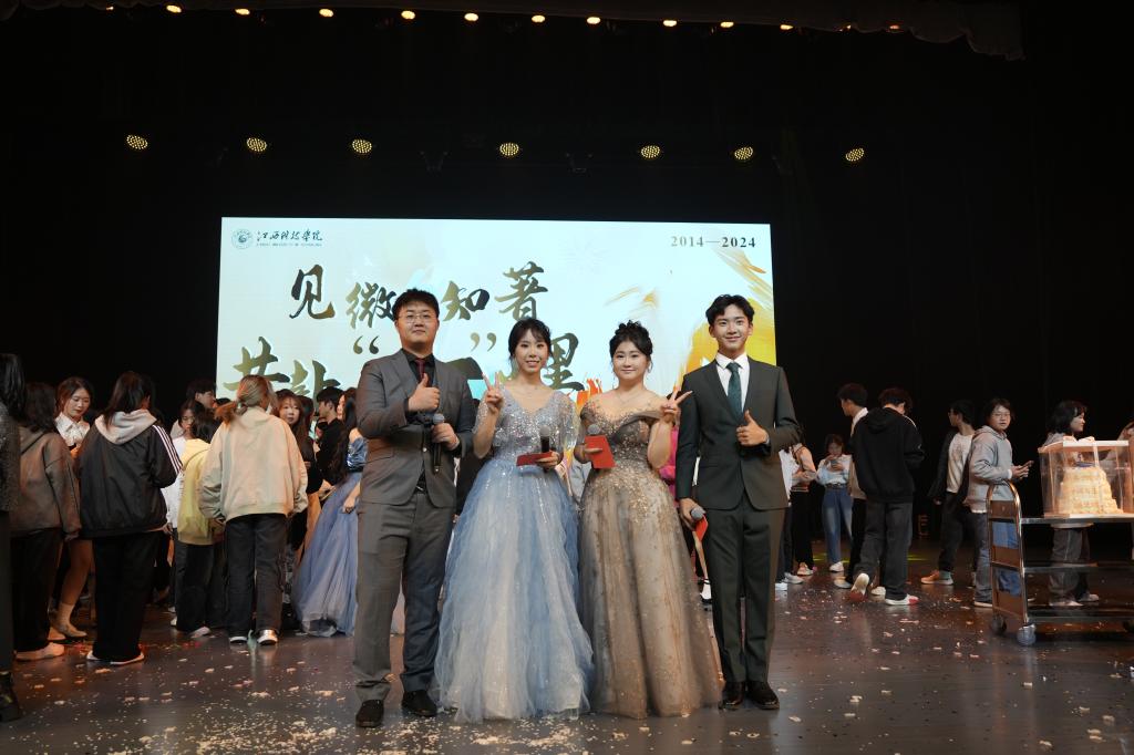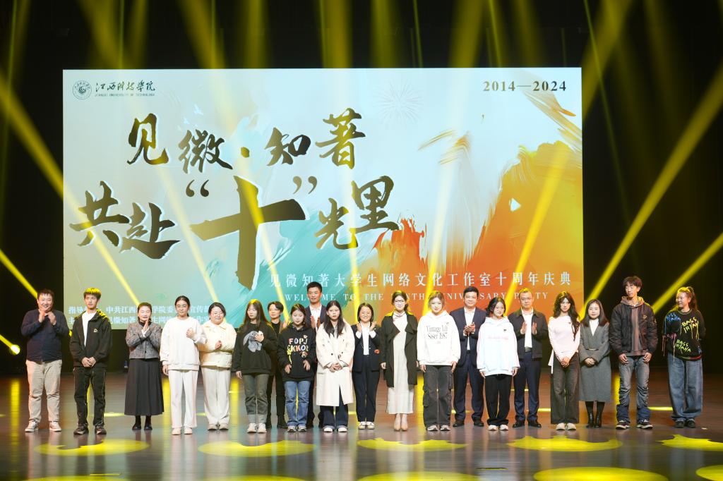 江科网讯(通讯员 谢晴 戴雯 成畅航)11月22日晚,小雪之际,由校党委宣传部主办、见微知著大学生网络文化工作室承办的“见微∙知著共赴‘十’光里”十周年庆典晚会在沙龙舞台举行。当晚,组织部部长谢振林、宣传部部长郭月芳、校团委书记马孙亮、心理健康中心主任杨铃琪,以及各单位(部门)新媒体中心的师生代表、学生代表共赴这场晚会。