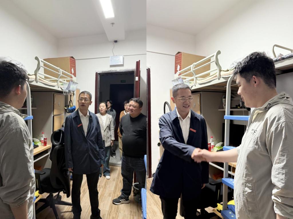 在走访过程中,吕文威副校长与同学们亲切交谈,详细了解大家的学习情况,包括课程难度、学习压力以及对未来的规划等。他关心同学们的心理健康和宿舍安全,询问大家是否有遇到情绪困扰或压力过大的情况,叮嘱大家要注意防火、防盗等。他表示,学校和学院始终将同学们的全面发展放在首位,希望大家能够在江科的大家庭中,不仅学业有成,更能健康快乐地成长。他鼓励大家积极面对学习和生活中的挑战,保持积极向上的心态,同时也承诺学校和学院将不断努力,为大家提供更好的服务和支持。