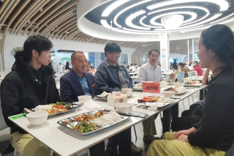 用餐期间,他亲切询问同学们对食堂饭菜品种、质量、价格以及就餐环境等方面的意见和建议,并针对同学们提出的问题给予耐心解答和积极回应。他还同大家一起畅谈如何贯彻星火红舞班“扎根于红色沃土,为人民群众而舞”的班训,如何将红色文化传承好以及同学们应当如何把红色精神融入舞蹈艺术当中,鼓励他们要在今后的学习、生活中继续发扬红色精神,用舞蹈艺术传承红色文化,为社会作出更大的贡献。