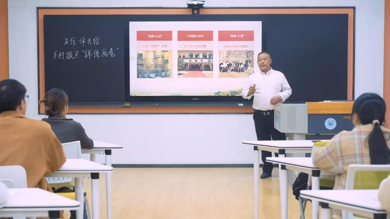 江西省靖安县古楠村原党支部书记钟英华凭借丰富的乡村治理经验,围绕“专题四:大学生做改革创新的生力军”教学主题,向同学们详细介绍古楠村在推进乡村振兴中人才、产业、生态、文化、组织五位一体、相辅相成的具体实践,内容丰富、案例真实,向同学们展示乡村振兴的“古楠”答案。他勉励同学们,要深入解读国家发展战略,进一步感悟“民族要复兴,乡村必振兴”的发展力量,更加坚定为乡村振兴贡献智慧和力量的决心。