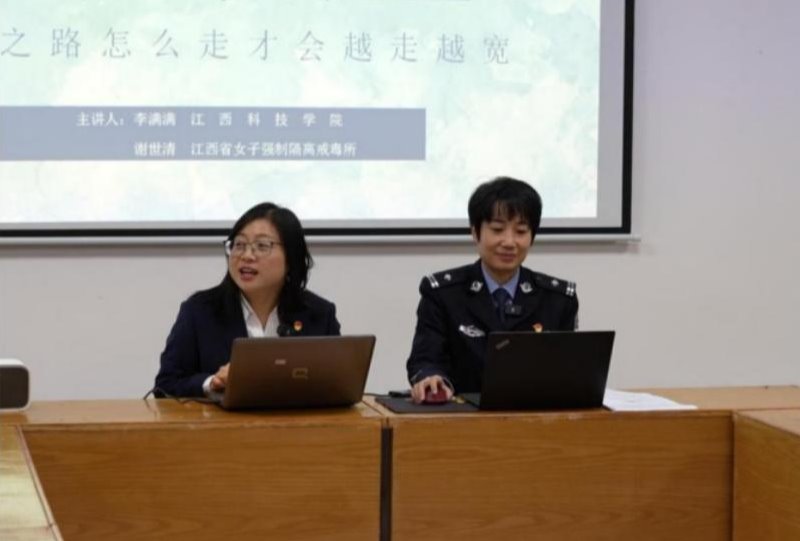 江西省女子强戒所教育矫正中心政治教导员谢世清凭借丰富的基层管理经验,围绕“专题二:树立正确的人生观”,以工作中的禁毒真实案例为切入点,讲述青年大学生为什么要树立正确的人生观以及如何树立正确的人生观等教学内容,与同学们一起共话“人生”,并告诫同学们一定要远离不良诱惑,积极参与社会志愿服务,在帮助他人的同时坚定理想信念,将人生道路越走越宽。
