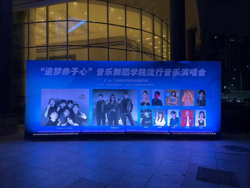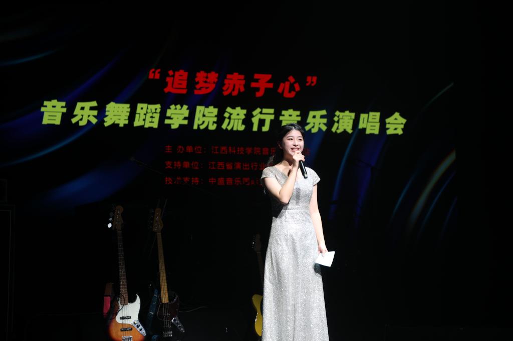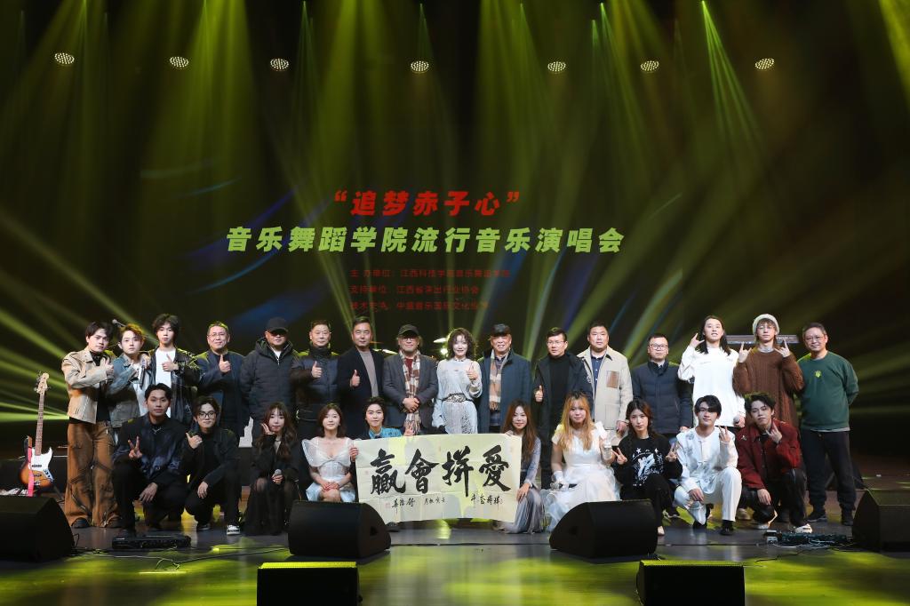 江科网讯(记者 杨泳慧 实习记者 杨光)12月26日晚,由我校音乐舞蹈学院主办的“追梦赤子心”流行音乐演唱会在沙龙剧场激情上演。国家五个一工程获得者、著名作曲家、博士生导师、原江西师范大学音乐学院院长邓伟民,江西科技师范大学音乐学院党委副书记、教授、硕士生导师、华语金曲奖校园先锋榜发起人赖传可,江西电视台著名导演、音乐人谢力丹,著名歌唱家、国家一级演员汪红波,著名综艺主持人、歌手洪宇,以及我校师生代表共300余人现场观看这一精彩纷呈的视听盛宴。