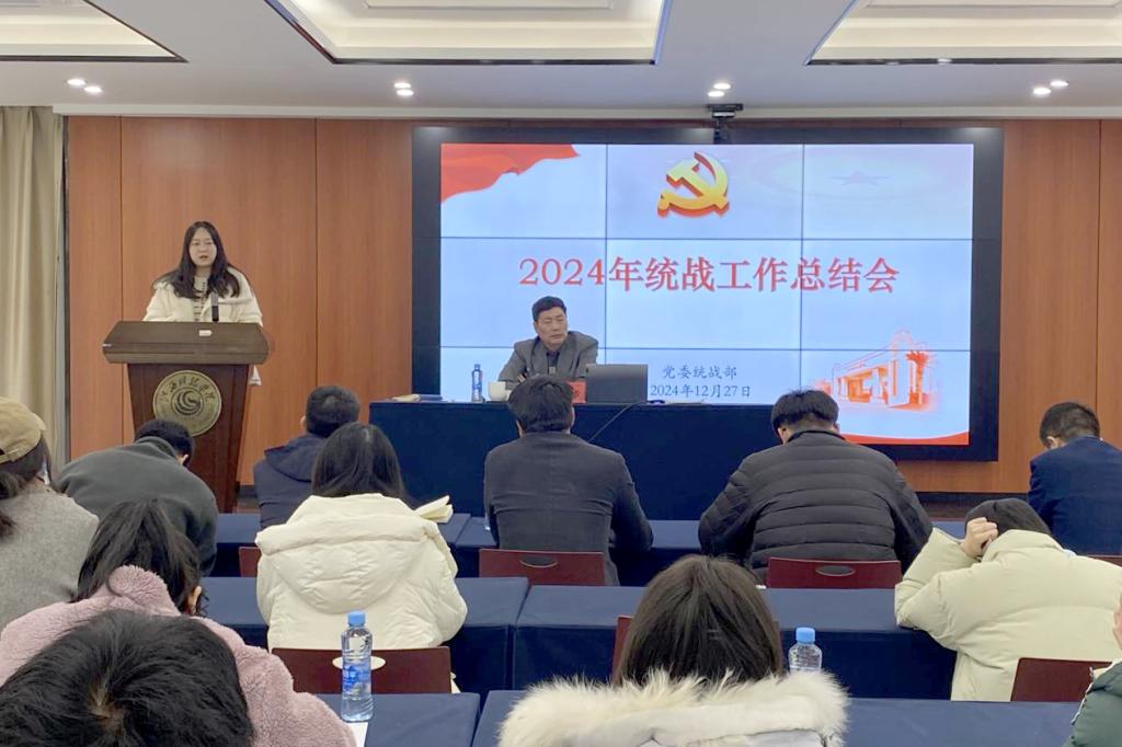 江科网讯(通讯员 郭静文)12月27日下午,我校召开2024年度统战工作总结会议。校党委副书记夏拥华出席会议。各二级学院党委专职副书记、各部门统战联络员及统战部全体工作人员参加会议。会议由统战部部长康婧主持。