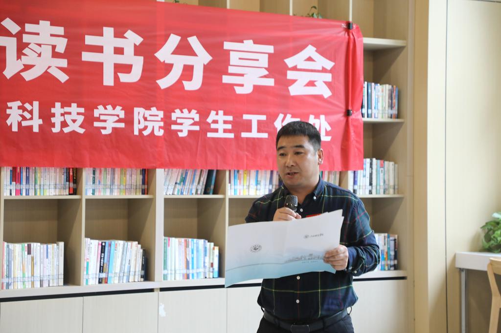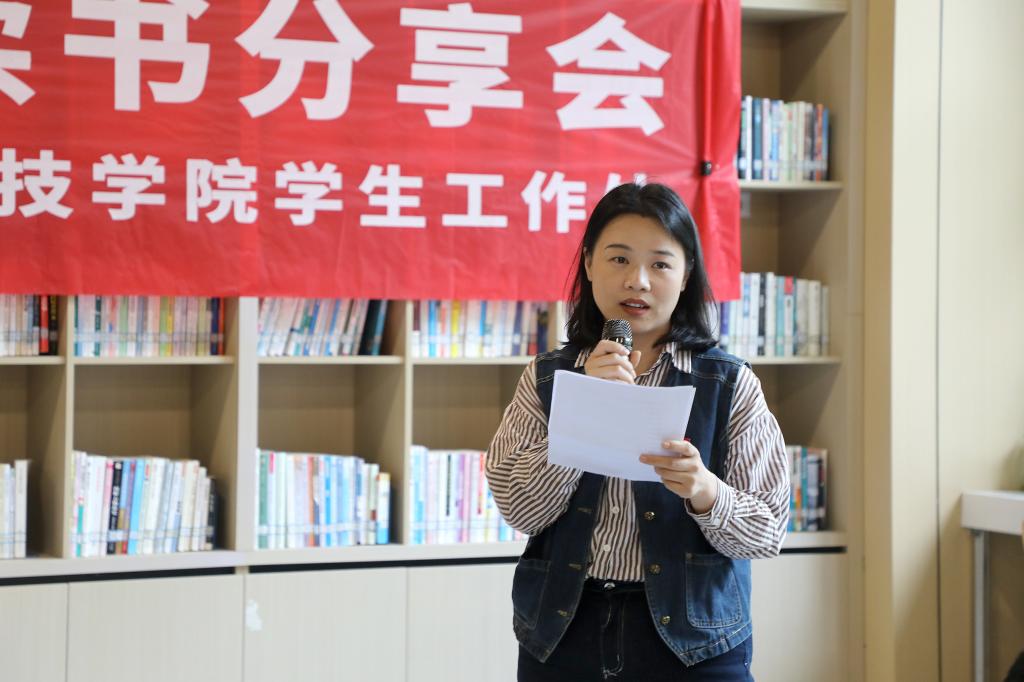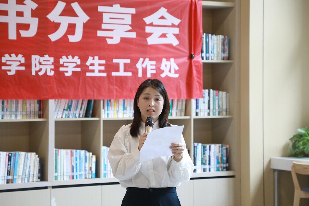 文化与传媒学院学工副院长周春立、教育学院学工副院长阮保俊分别分享了《高校学生工作的理念方法及实践探索》《小平小道》的读后感,并详细讲述各自读书的方式方法,指导学生挑选阅读书籍;辅导员代表戴珍芳、徐敏、王慧丽就《被讨厌的勇气》《活着》《平凡的世界》等书籍,围绕“如何通过阅读提升专业素养和人生境界”与现场师生交流阅读体会、分享心得感悟。