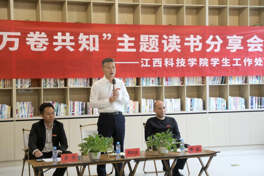 江科网讯(记者 何强江)4月17日下午,学工处在学校北区合一书院组织开展“好书共读,万卷共知”主题读书分享会。周冰冰副校长同学工处相关负责人、各学院学工副院长、辅导员代表、学生代表齐聚一堂,荐好书、谈感悟、话成长。