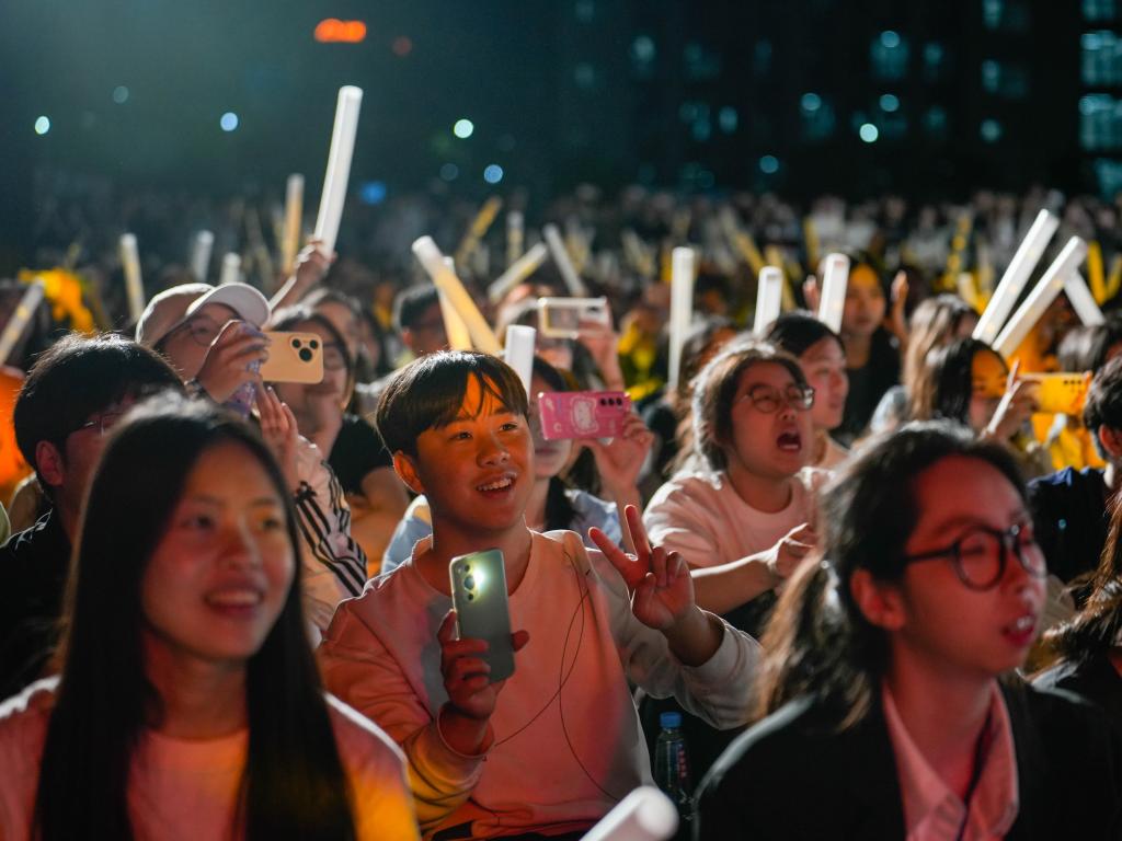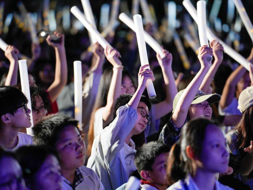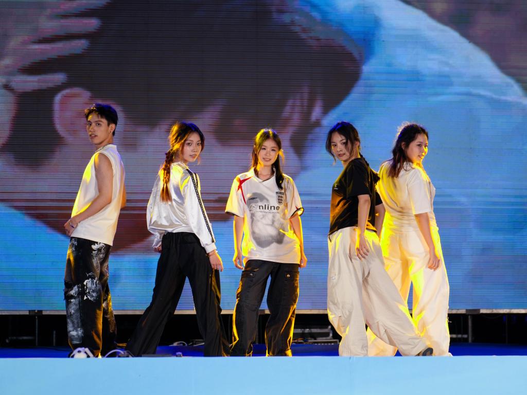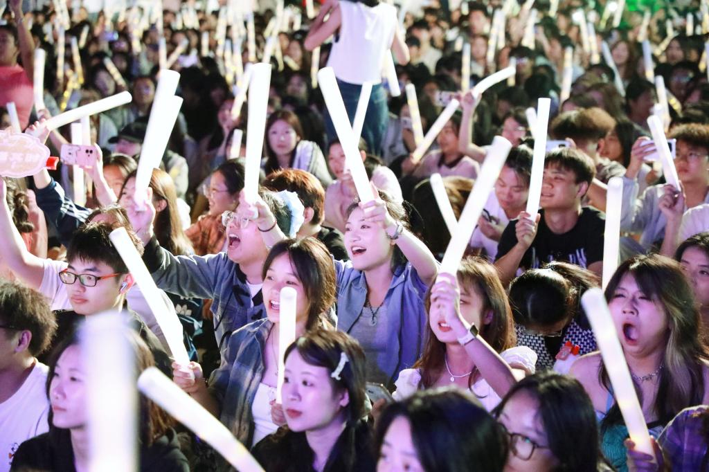 歌声动人,热舞燃情。舞蹈《ZOO》以动感十足的节奏和利落的舞姿拉开了此次音乐节的序幕。随后,《眼鼻嘴》《喜欢你》《想去海边》等经典曲目一一唱响,带动全场一起合唱。《Dejavu》《Ditto》《石窟日月》《Rhythm Pulse》《Star》等不同风格的舞蹈依次上台,为观众带来耳目一新的视觉体验……从激情澎湃的摇滚曲目,到动感十足的舞蹈唱跳,再到活力四射的流行歌曲,每一个表演都赢得了台下观众的阵阵欢呼与掌声。