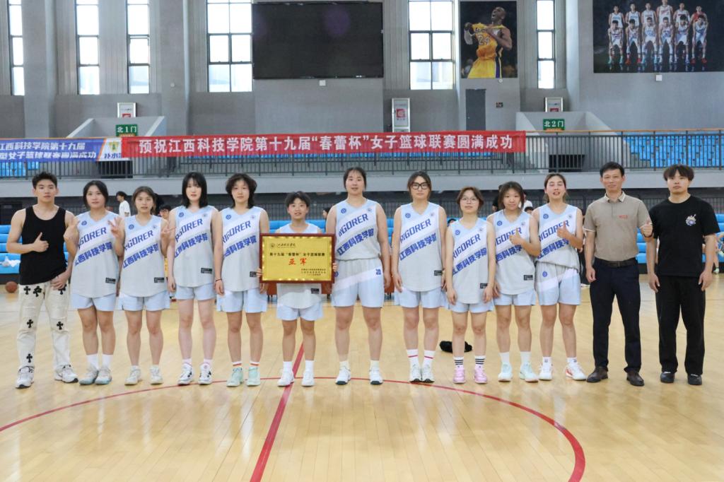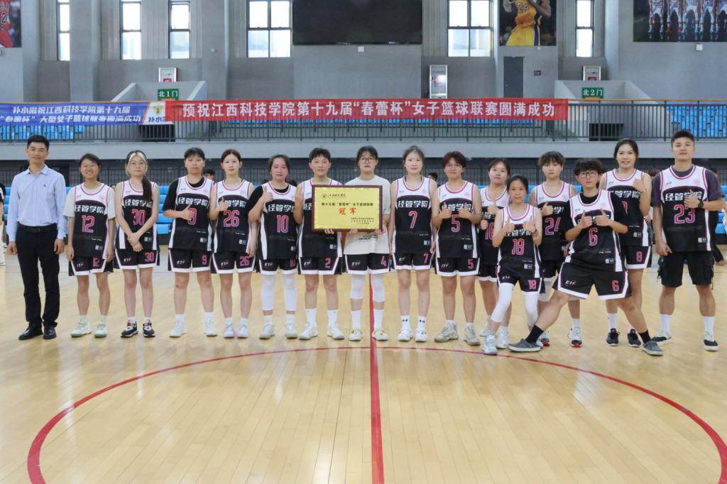 比赛开场,双方球员迅速进入状态。经济管理学院凭借流畅配合与精准外线投射率先取得领先。体育学院不甘落后,凭借队员良好身体素质和顽强防守积极寻找进攻机会。赛场上,双方你来我往,经济管理学院利用战术穿插撕开防线得分,体育学院则靠内线对抗抢篮板发动反击。比赛进入末节决胜时刻,两队比分紧咬,现场观众的呐喊助威声此起彼伏。最终,经济管理学院以41:34获胜,摘得第十九届“春蕾杯”女子篮球联赛冠军。体育学院、人工智能与大数据学院分获亚军和季军,医学院、外国语学院获得道德风尚奖,裁判协会获得“优秀团队”称号,叶明霞同学获得最佳人气奖,蔡嘉怡同学获得全明星赛MVP、总决赛MVP,程培同学获得“优秀裁判员”称号。