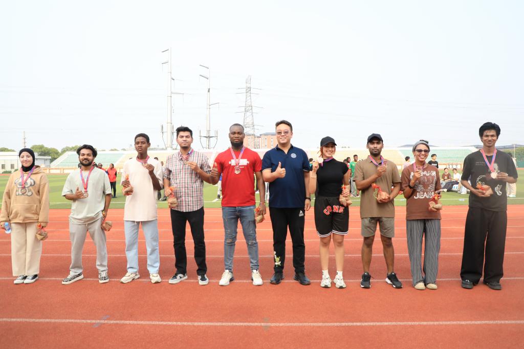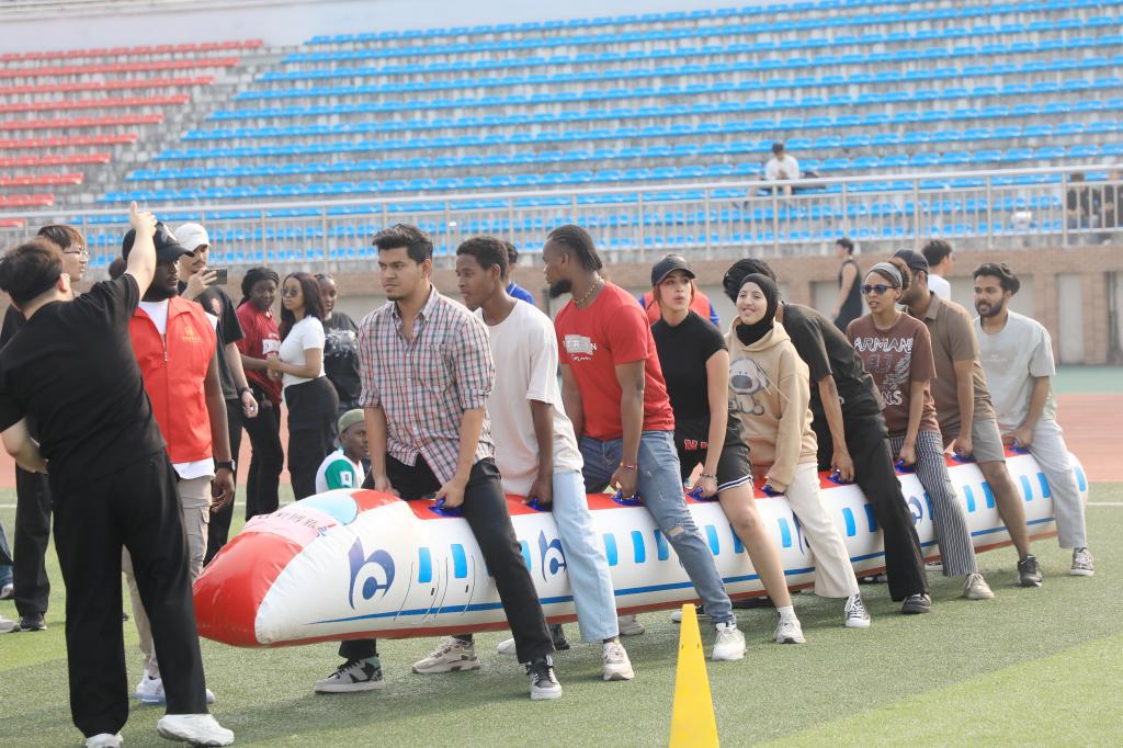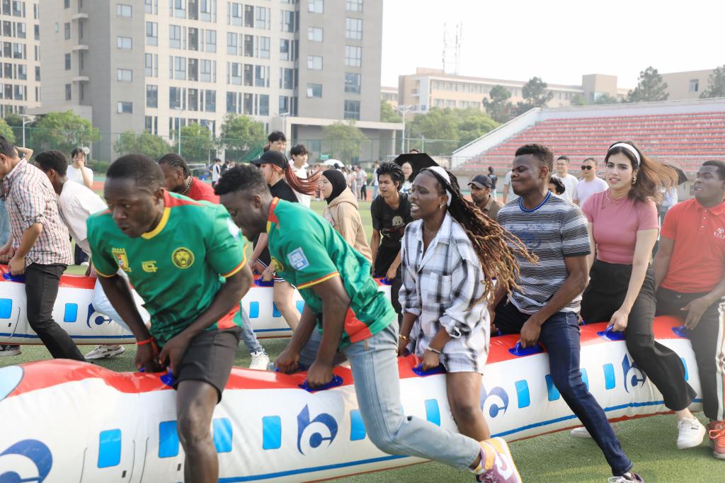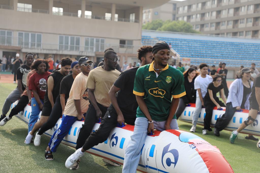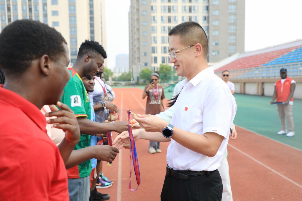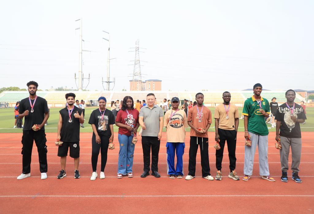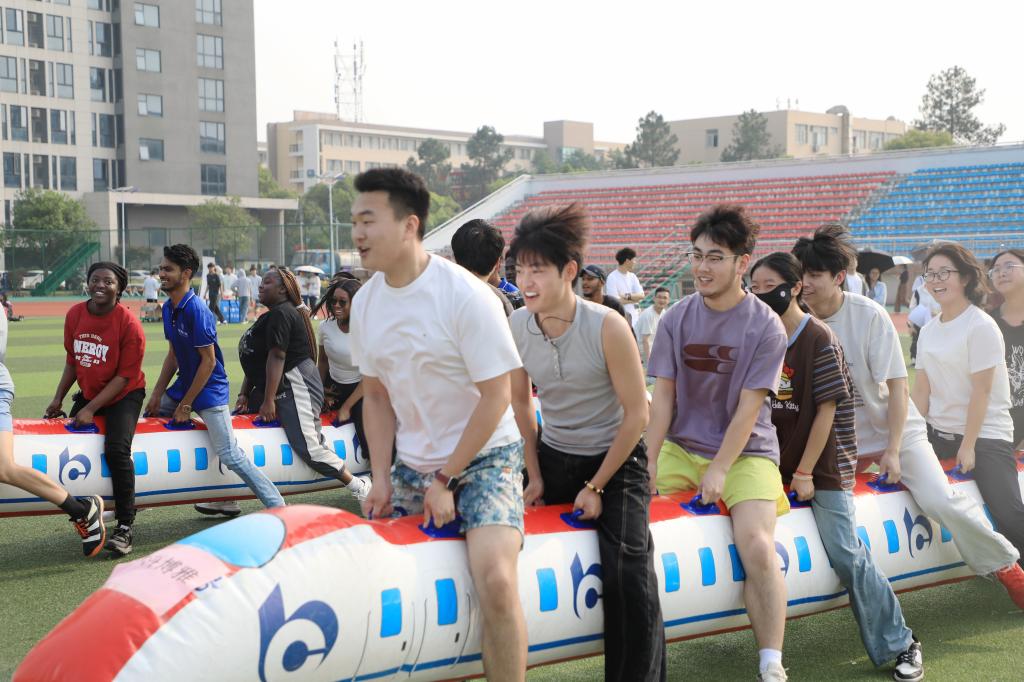 比赛现场,中外学子热情高涨,默契组队参赛,步调一致地推动着旱地龙舟在赛道上飞驰。每支队伍都铆足全力,你追我赶,现场加油声、欢呼声此起彼伏,热闹非凡。激烈角逐后,Dragon spirit、Red Dragon、龙之队分别获得第一、二、三名。吕文威副校长与学院领导为优胜队伍颁发奖牌,鼓励学子们将赛场上团结拼搏的精神延续到学习生活中。