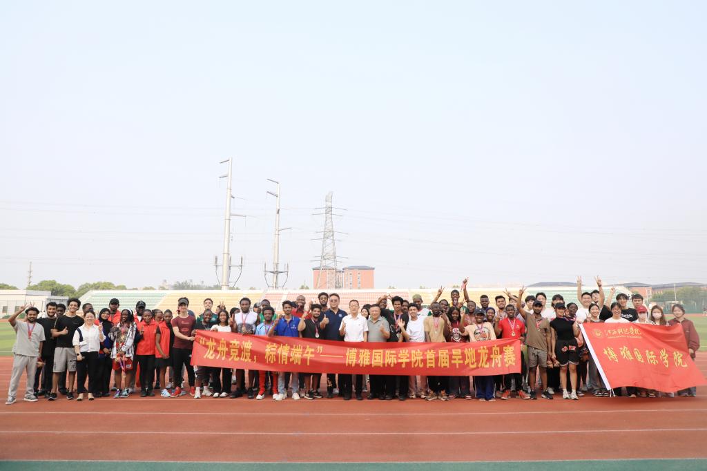 江科网讯(记者 刘莹)端午佳节将至,5月26日下午,博雅国际学院在奥林匹克中心成功举办“龙舟竞渡,粽情端午”旱地龙舟大赛活动。副校长吕文威参加本次活动,与中外学子一同感受传统佳节魅力。