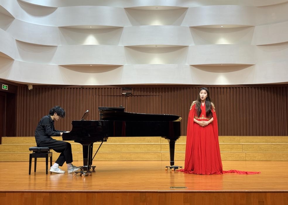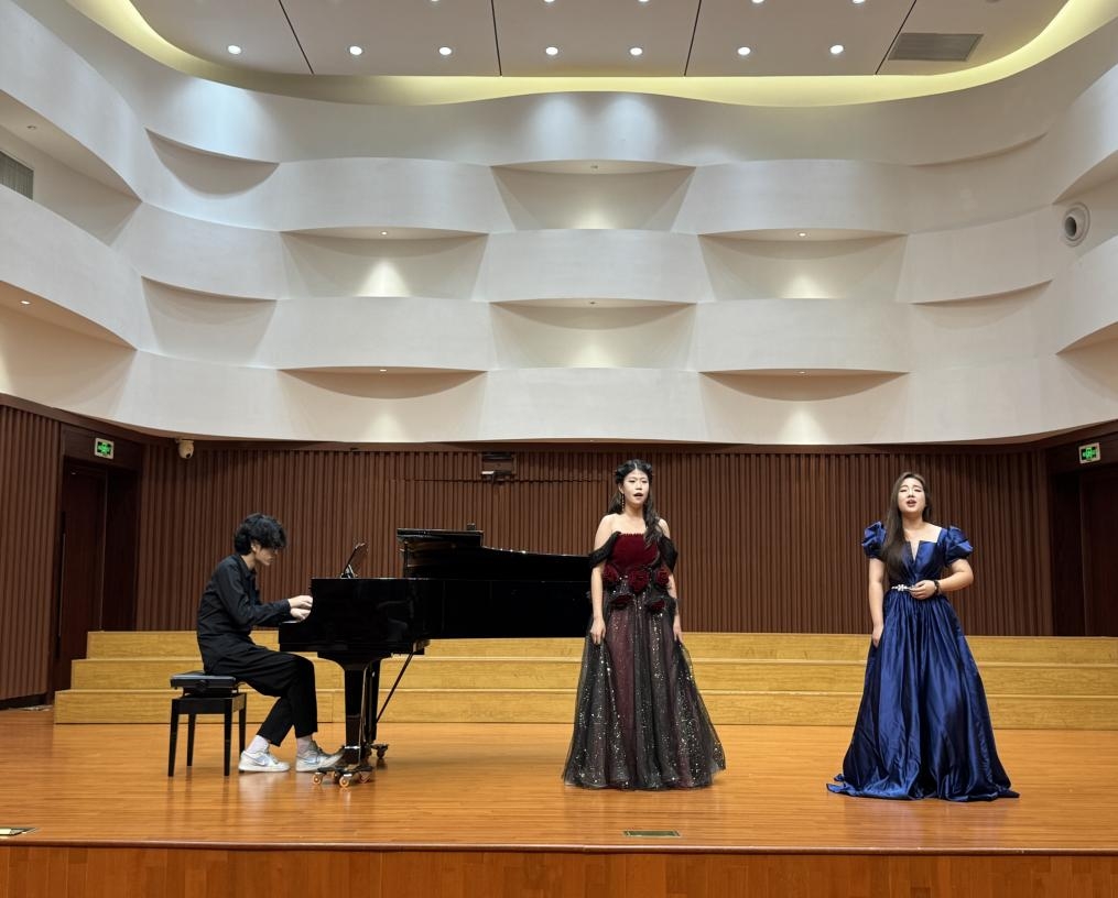 音乐会以独唱、二重唱等形式演绎了《黄水谣》《嘉陵江上》《我和我的祖国《我的爱人可听见》《运河谣》等14余首经典曲目。演唱内容既涵盖革命岁月的峥嵘记忆,也聚焦新时代的奋斗故事,更融入青年一代的家国情怀,不仅全景式展现了学生群体的阶段性艺术实践成果,更通过巧妙植入爱国主义、文化自信等思政内核,引导青年学子以艺术为媒传递时代正能量,让美育与德育在舞台上实现深度共鸣。