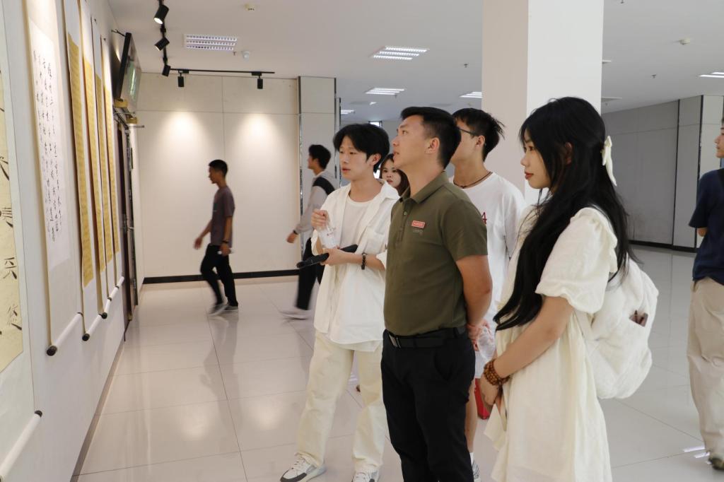 在接待员的带领下,我校师生依次参观了书画展软硬笔、国画、篆刻、手工四个打卡点。参观中,两校同学们或驻足赏画、或踊跃创作,围绕书画技巧等话题热烈探讨,气氛融洽。立夏之际,美景与墨韵相衬,师生们还一同挥毫泼墨,感悟与自然融合之妙。