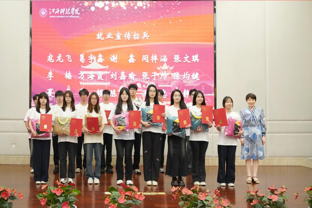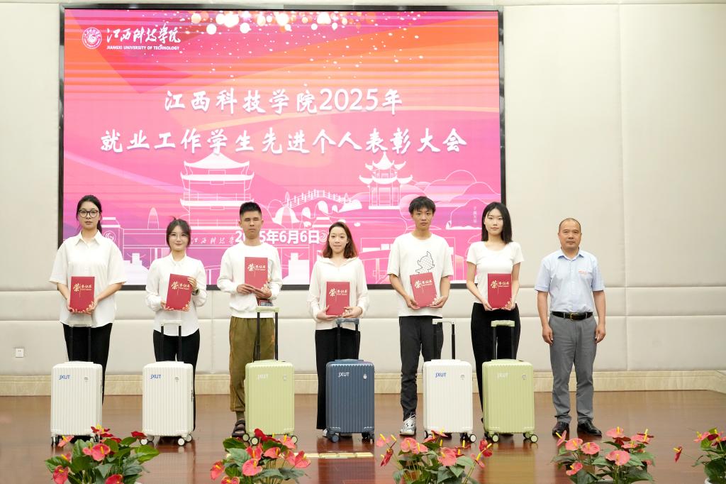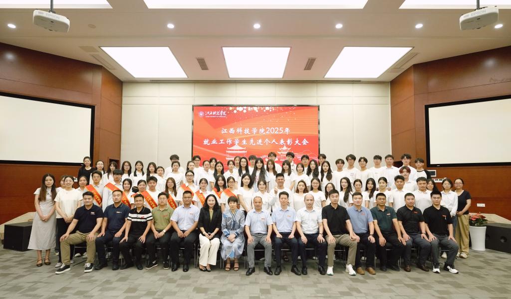 江科网讯(招就处)6月6日下午,江西科技学院2025年就业工作学生先进个人表彰大会在行政南楼第一会议室举行。校党委副书记、副校长闵桂林,宣传部、学工处、学生资助管理中心、招生就业处等部门负责人,各学院党委书记、学工秘书及班级就业委员代表参加会议。