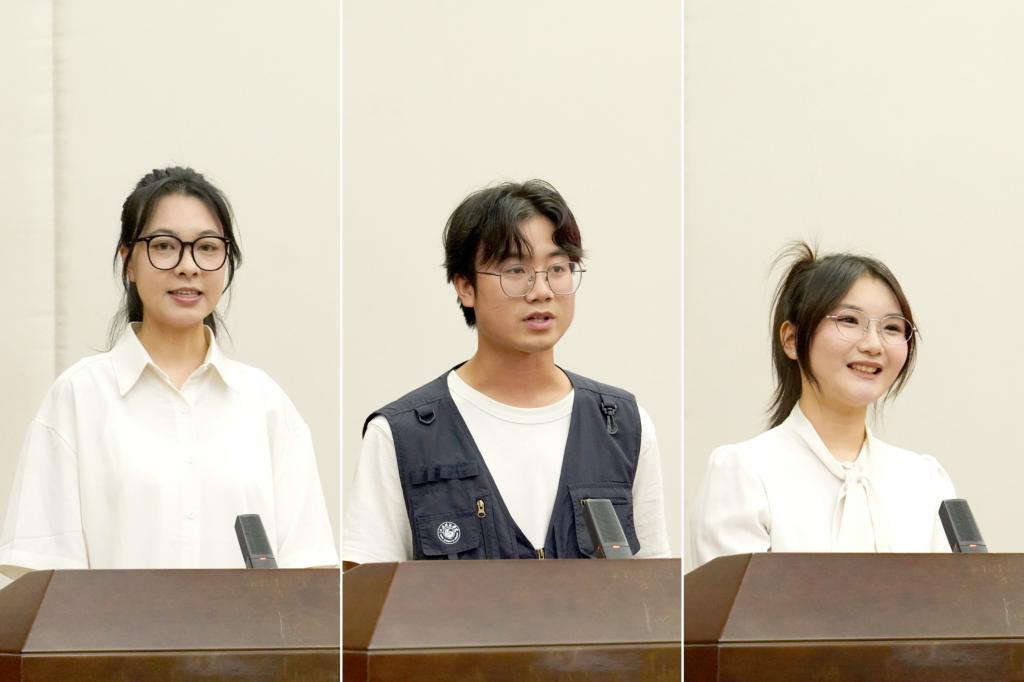 十佳生涯发展与就业委员代表沈欣媛、十佳就业宣传干事代表余杭、职业规划大赛校赛获奖选手代表唐思媛分别作典型发言。
