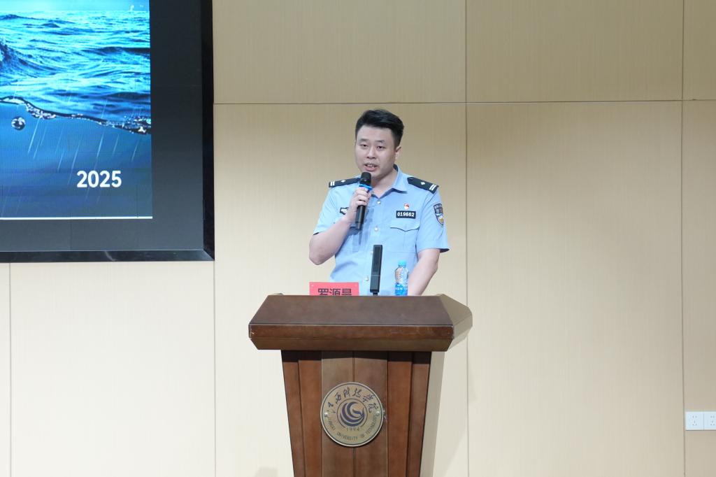 江科网讯(通讯员 张昱 黄宗信)为筑牢夏季防溺水安全屏障,守护青年学子生命安全,6月3日,由高校联防联控中心主办,体育学院、游泳协会协办的“警徽闪耀护青春,校地同筑‘溺’防线”防溺水安全宣讲活动在报告B厅举行,构建起“专业师资+警务力量+学生自治”的联动机制。昌东派出所驻校民警队长罗源昊主持活动,体育学院专职教师周予墨作防溺水宣讲。