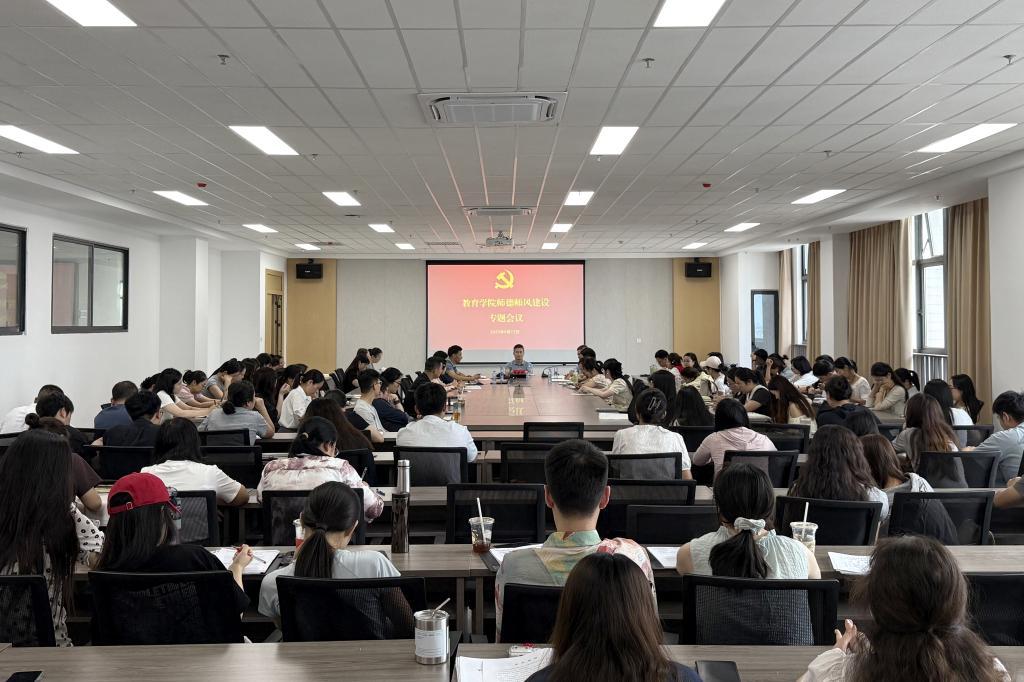 江科网讯(通讯员 汤佳伟)6月17日,教育学院召开师德师风建设专题会议,校党委委员、副校长周冰冰出席并讲话。教育学院院长兰霞萍、党委书记阮保俊、副院长王超及全体教师与会。