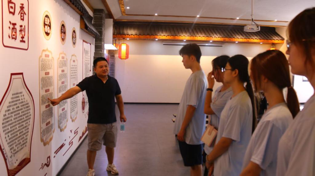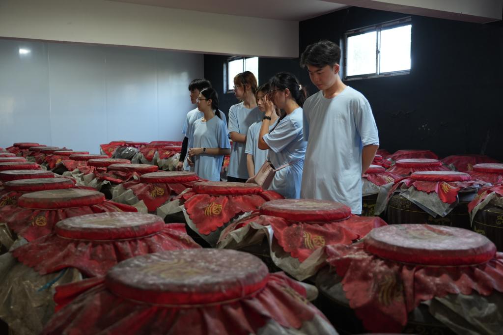 当天上午,实践队首站抵达双钟镇政府,采访返乡校友雷好。“乡村振兴急需青年力量,我辈青年需要像绣花针一样,一针一线地做好工作。”他以参与乡村治理的实践案例,生动诠释了当代青年的乡土情怀。午后,实践队转赴流芳豆香小镇,在非遗工坊“酒立方”见证传统酿酒技艺的千年传承与现代化蝶变。