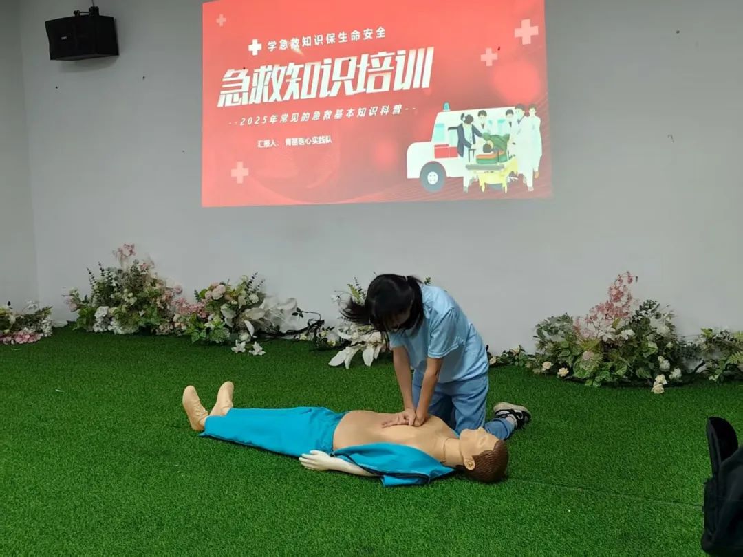 团队再赴幕冲村进行入户调查,并走访五保户等困难家庭,询问起居并记录健康数据,送上鸡蛋、肥皂等物品。下午,队员们开展急救培训,用“给心脏‘充电’”的比喻讲解心肺复苏,手把手教学按压深度与节奏,以专业践行医者仁心,用行动传递关怀。