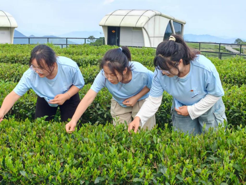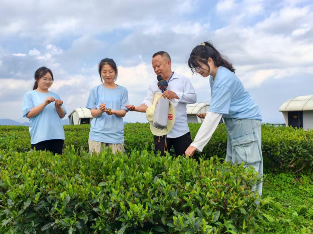 团队赴万长山茶场调研,认真学习“一芽一叶”采摘技艺,体会茶农“精于毫厘”的坚守,同时了解到茶叶作为特色产业,是连接市场与农户的“黄金纽带”,承载村民增收希望,读懂乡村振兴的“产业密码”。