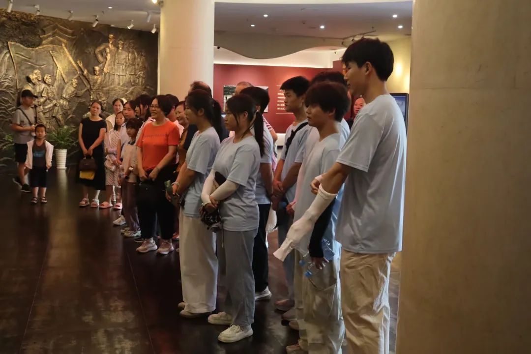 实践队在幕冲村开展义诊并前往红色纪念地。义诊现场,队员们熟练操作血糖仪、血压计,用通俗语言讲解慢性病防治知识;红色纪念地中,队员们聆听将军戎马传奇,在烈士陵园向黄善基等烈士敬礼,从展品中感悟烽火岁月,让医者温情与革命精神交融。