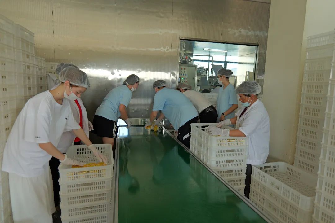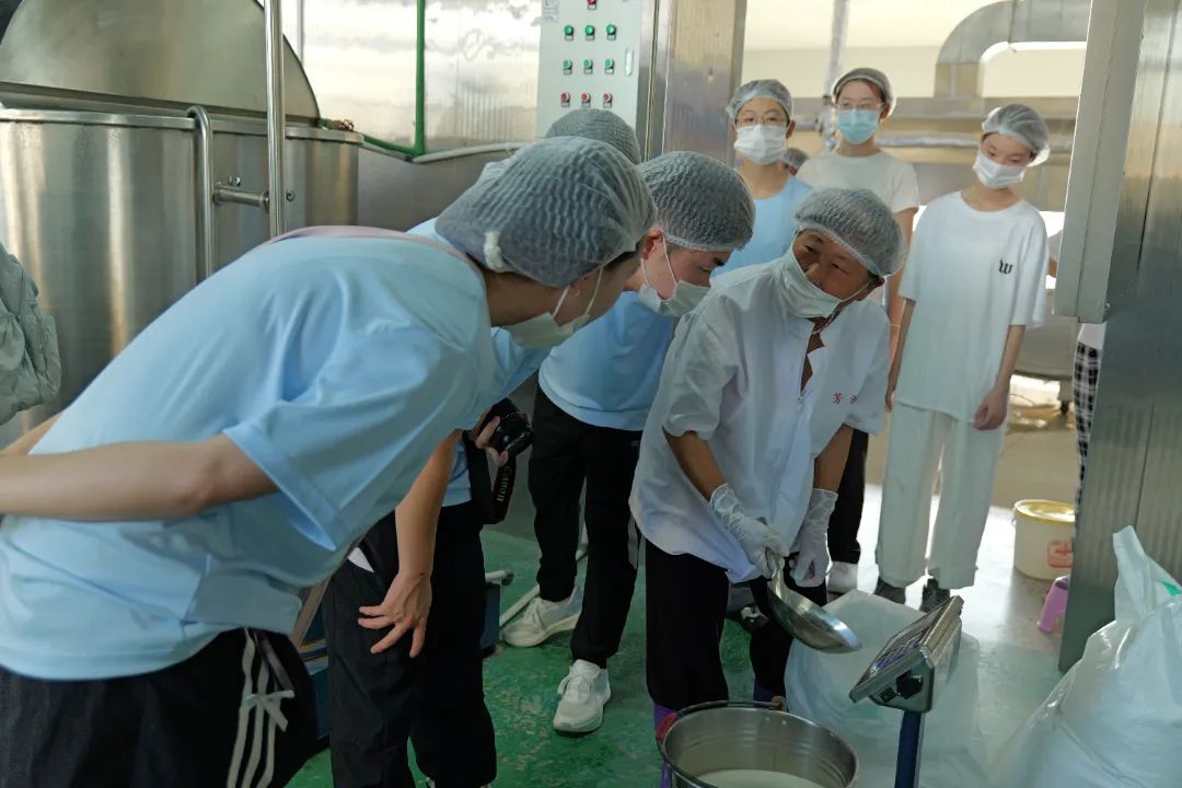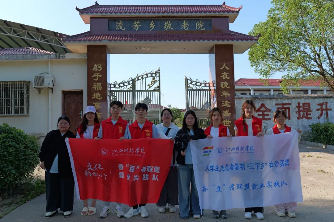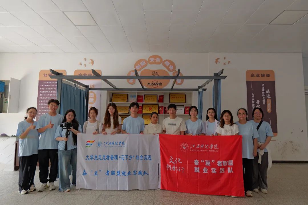 7月5日清晨,奋“豆”者联盟就业实践队走进江西芳洲生态农业公司豆制品厂,亲历豆浆研磨、豆花点制等工序,汗湿的衣衫见证“粒粒皆辛苦”的匠心。了解到企业以“公司+科研院所+基地+农户”模式带动增收,却面临无添加豆花冷链成本高、品牌知名度低等难题后,队员们心生暖意——午后携带亲手制作的豆花与慰问品前往敬老院,将软糯香甜与关怀一同送到老人手中。傍晚,队员们赶赴豆民宿参加乡村音乐节,与九江职业大学伙伴携手登台,让乡土间的音乐共鸣点亮星空。从车间实践到温情陪伴,从田间调研到音乐互动,青年学子以脚步丈量民生温度。