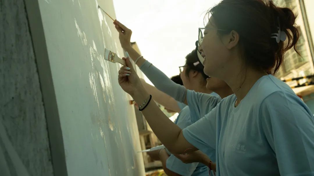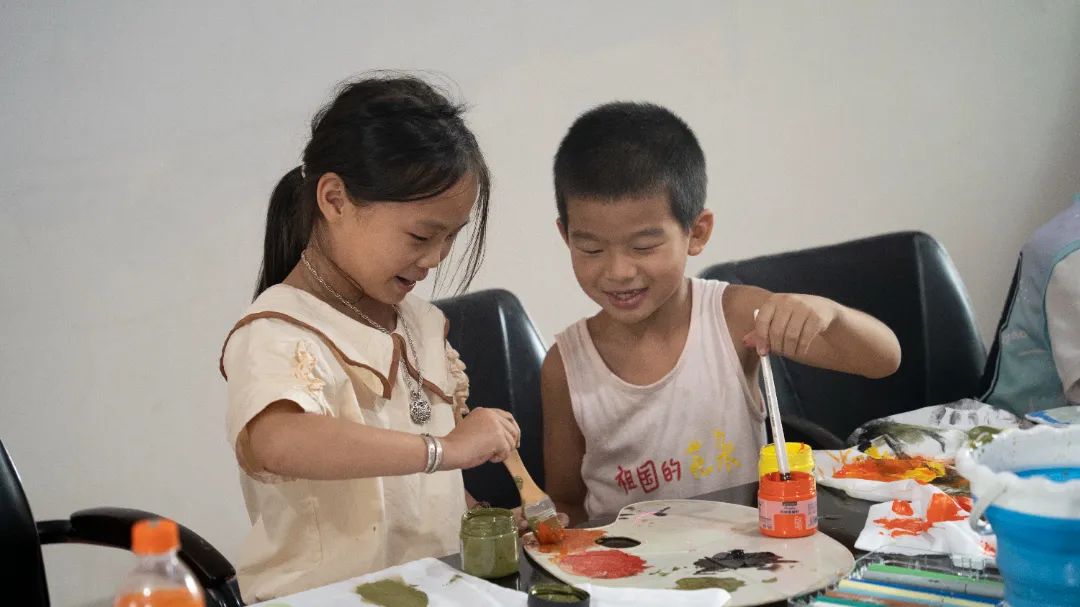团队赴抚州市资溪县马头山镇彭坊村,清晨拿起画笔,以层峦山景、葱郁竹林为灵感绘制墙体彩绘,辅以乡村振兴标语;走访三位老党员,邬春义老人嘱“精进学业报效祖国”,方金莲老人(前村妇女主任)叹“国家巨变”,老书记林叶清以奋斗历程寄语“到祖国需要的地方去”;下午为儿童讲防溺水知识,开展“衣笔童画”活动,孩子们用斑斓色彩绘出党旗、家园,童心与初心共鸣。