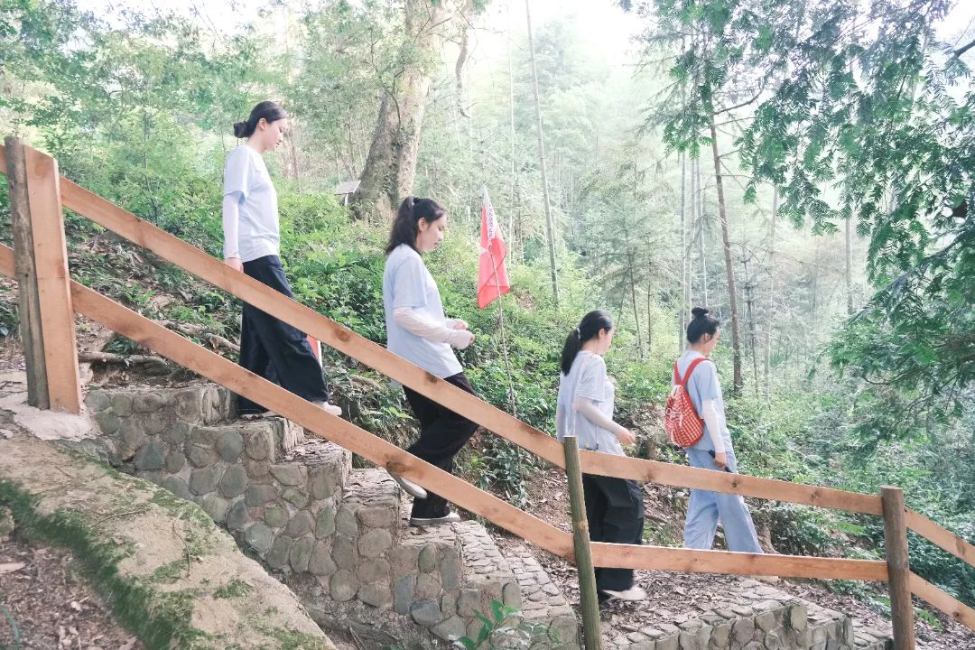 团队重返皖赣边苏区程家山历史展厅,听叶主任讲解斗争历史;随后走进清溪村红色森林公园,探访红军战斗遗址,夕阳中踏上归程,为此次实践画上句号。