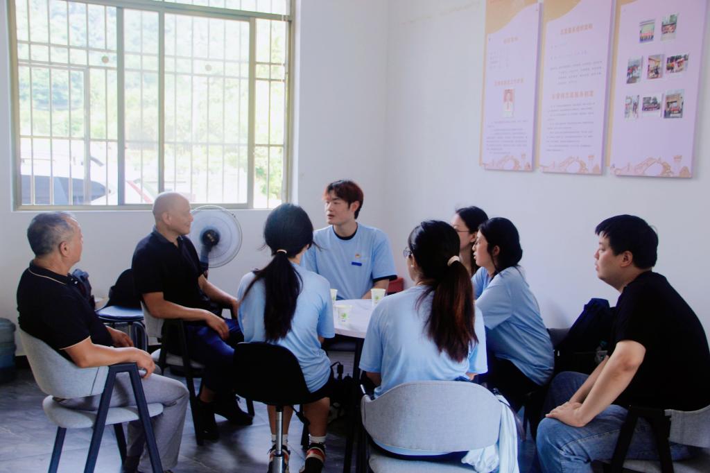在罗浮镇的村巷阡陌,实践队展开了各项走访慰问活动。队员们挨户走进村民家中,关切老人的生活起居,倾听老人叙述革命故事,探究红色基因如何融入村民日常生活以及精准服务群众的创新模式。在罗浮林场,队员们参观了岗莓和草珊瑚种植基地,与村支书、林场负责人等就农林产业可持续发展、提高农产品附加值、推动农林产业与乡村振兴深度融合等议题展开热烈的讨论。来自田野的洞察与真实感悟,为“红韵绘农”实践蓝图锚定了现实根基与人文温度。