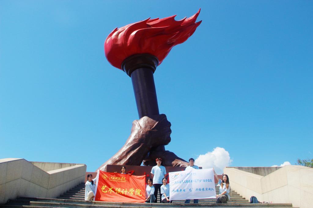 实践队参观走访了多个红色教育基地。在毛泽东同志旧居,简朴的院落及斑驳的器物,诉说着历史与信仰。旧居的空间布局智慧、器物背后的朴素美学、岁月刻下的独特痕迹,都被队员们敏锐捕捉并深入解构。在南山公园火炬广场象征“星火燎原”的巨型雕塑下,队员们俯瞰圣地新貌,眼前葱茏的绿意与崇高的革命精神深度交融。在井冈山革命博物馆,丰富的馆藏将宏大叙事凝练于细节与符号之中,启发青年思考如何让历史细节融入精神血脉,使革命精神在当代设计中焕发新生。这些红色印记,正积淀为滋养青春成长的精神沃土与不竭的力量源泉。