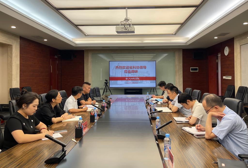 江科网讯(通讯员 曹买生)7月23日上午,江西省科协学会部部长张全市、二级调研员彭韬、三级调研员胡海花等一行四人来校调研,就高校科协及大学生科技社团建设情况开展调研指导。科研处处长钟宗林接待了调研组,校科协、校团委相关同志参加座谈交流。