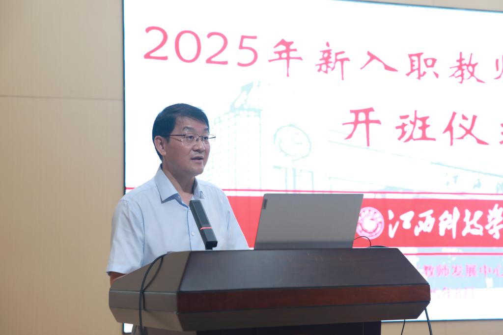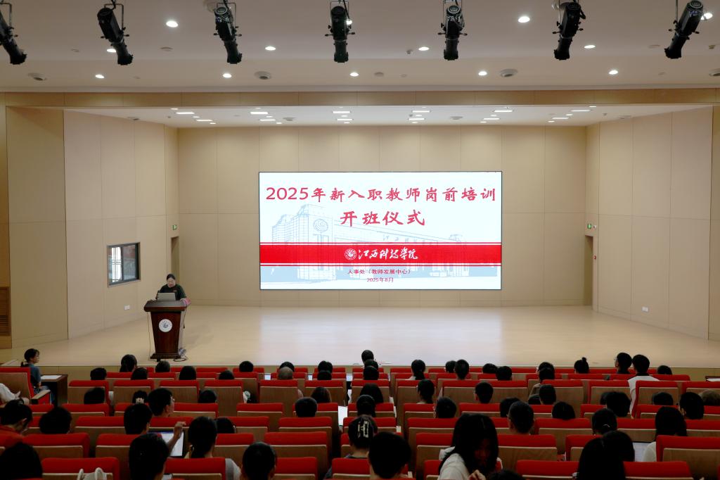 江科网讯(记者 何强江)8月25日上午,我校在报告C厅举行2025年新入职教师岗前培训开班仪式。副校长陈庆勤出席并讲话,人事处(教师发展中心)处长张晓宇主持仪式。