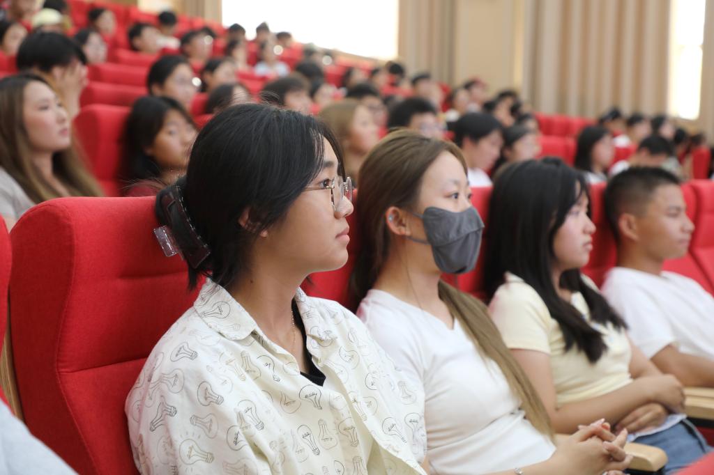 讲座中,李启星老师从普通话的前世今生、成语里的中国故事、成语中的语言文字规范、国家通用语言文字的文化传承与统一作用、国家普通话水平测试等五个部分展开讲座内容。在介绍“普通话的前世今生”时,她结合历史文献与现实案例,清晰梳理了普通话从方言融合到成为国家通用语言的发展脉络,让同学们深刻认识到普通话作为沟通桥梁的重要性。她还聚焦“成语里的中国故事”,通过经典成语案例,生动还原背后蕴含的历史典故与人文精神,带领同学们在故事中感受古人的处世哲学与道德追求,现场不时响起阵阵掌声。