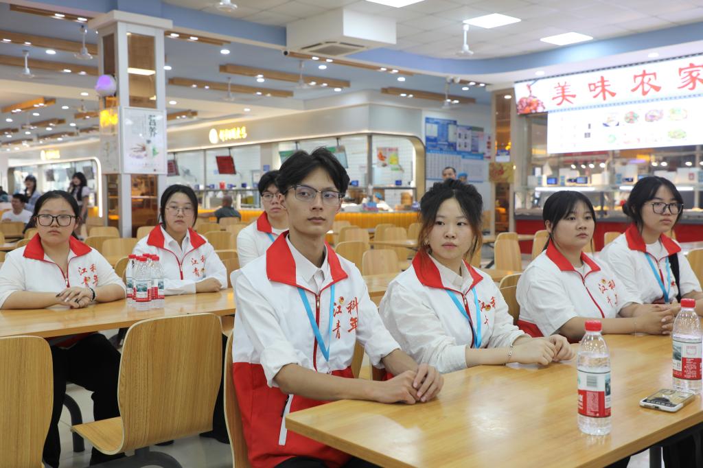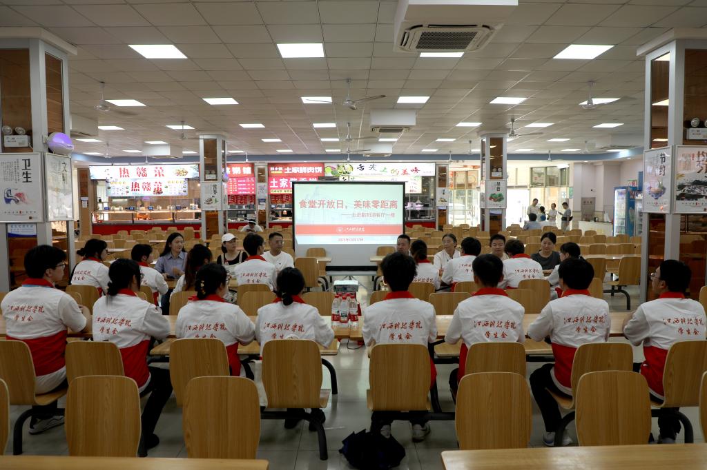 江科网讯(记者 何强江)“没想到我们平时吃的饭菜背后有这么多讲究!”10月17日,校团委、总务处、校学生会携手学生代表一同走进鄱阳湖餐厅后厨,开启一场“舌尖上的安全之旅”。从食材采购标准到冷链储存流程、从餐品加工环节到餐食上桌、从仓储管理到卫生把控,这场“沉浸式”体验让学生代表们亲眼见证“好吃又健康”背后的精细化管理。