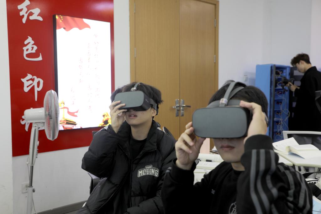 在思想政治教育基地VR教室,陈辉副校长沉浸式观摩了马克思主义学院程红玲老师讲授的《中国近现代史纲要》课程。程老师创新采用VR技术与课程内容深度融合的教学模式,通过VR设备生动还原近代中国重大历史事件场景,让学生“穿越”至历史现场,直观感受历史的壮阔与沧桑,有效激发了学生的学习兴趣。陈辉副校长认真记录教学环节,细致观察学生课堂反应,对该教学方式给予高度肯定。他表示,《中国近现代史纲要》作为思政核心课程,VR技术的应用成功破解了传统历史教学场景感不足的难题。同时他建议,后续应进一步丰富VR教学资源库,结合地方红色文化资源开发特色教学内容,引导学生在沉浸式体验后开展深度思考与讨论,实现“技术赋能”与“价值引领”的有机统一。