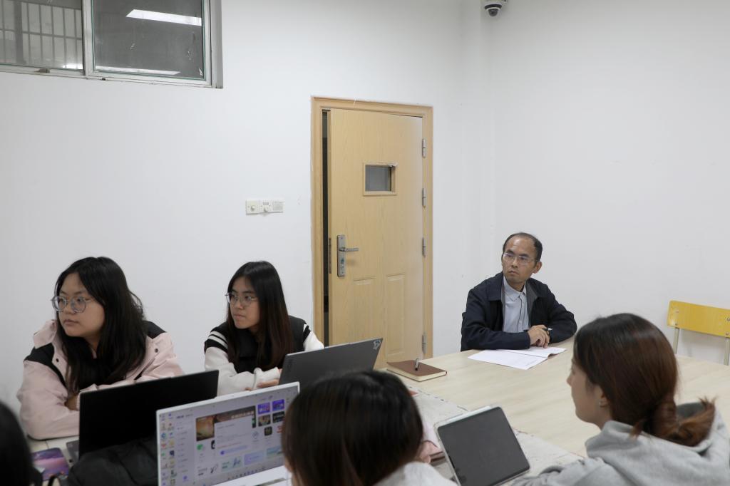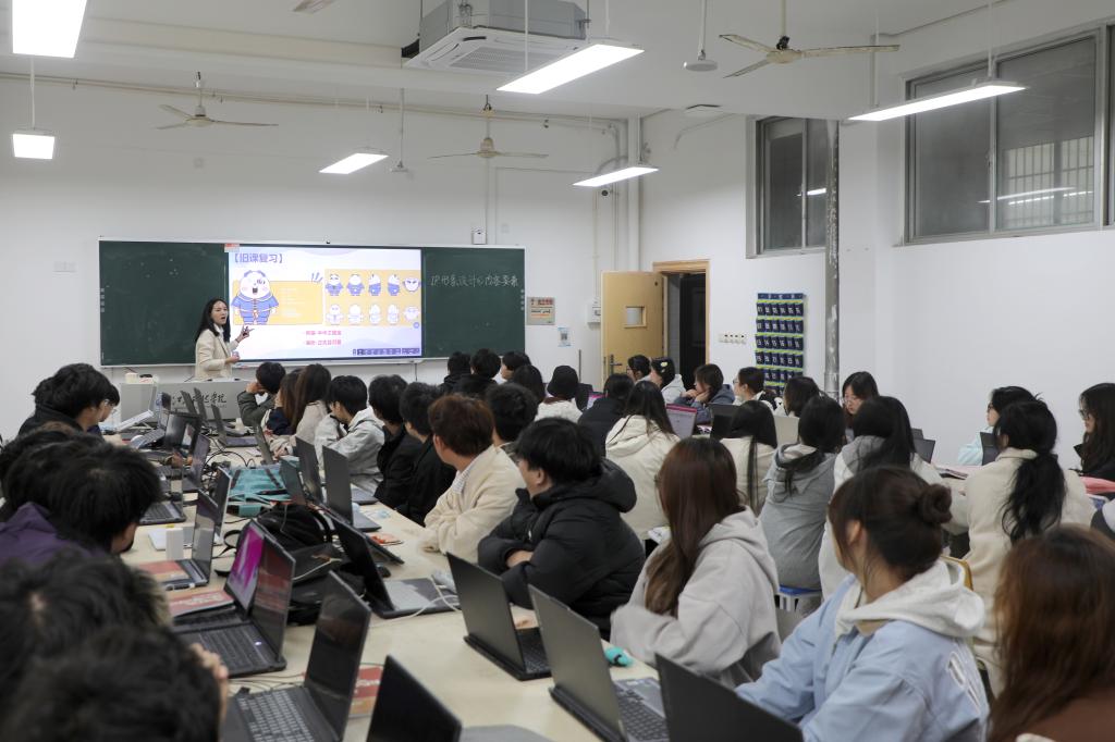 随后,陈辉副校长来到艺术设计学院,走进24本视觉传达4班的《插图设计》课堂,与同学们共同聆听潘慧芳老师的授课。课后,他与潘老师深入交流,对其扎实的教学内容、鲜活的案例以及课程与视觉传达专业人才培养需求的高度贴合给予认可。他提出,可在教学中增加跨学科融合案例,加强与行业实际项目的对接,进一步提升学生的实践创新能力和市场适应能力。