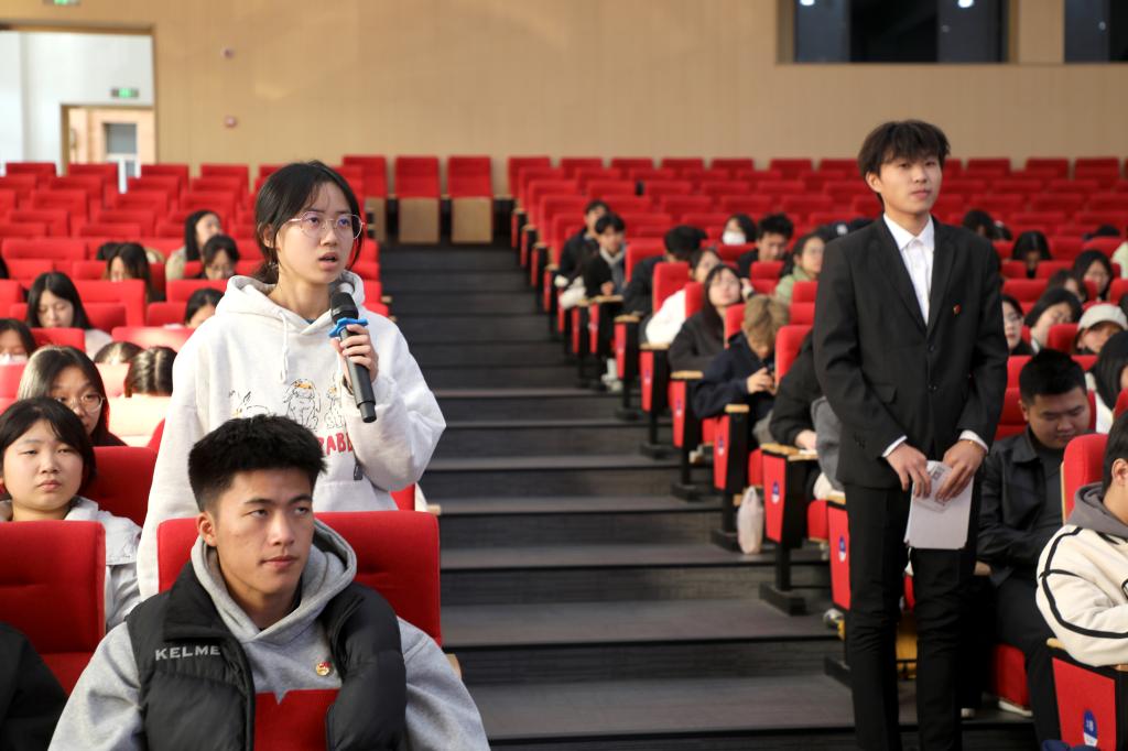 在“分享交流・廉心共鸣”环节,经济管理学院的万青、音乐舞蹈学院的王曼玉、医学院廖雨馨、外国语学院的宋文丽等四位党员代表先后登台,用真挚话语讲述家风故事与廉洁感悟。从“宁可吃亏,不可失信”的家训传承,到基层干部父母“不谋私利、清正履职”的言传身教;从“耕读传家”的家族传统,到新时代青年党员对“诚信、勤俭、担当、廉洁”的践行诠释,平凡叙事中蕴含的家风力量润物无声,引发全场师生强烈共鸣,也让大家对“传家”的内涵有了更深刻的理解。互动问答环节将活动气氛推向高潮。围绕“客家祠堂家训中的廉洁要求”“经管专业从业者如何融合家风廉洁与职业诚信”等问题,现场人员踊跃举手、积极抢答,在思维交锋中深化对廉洁家风的认知。