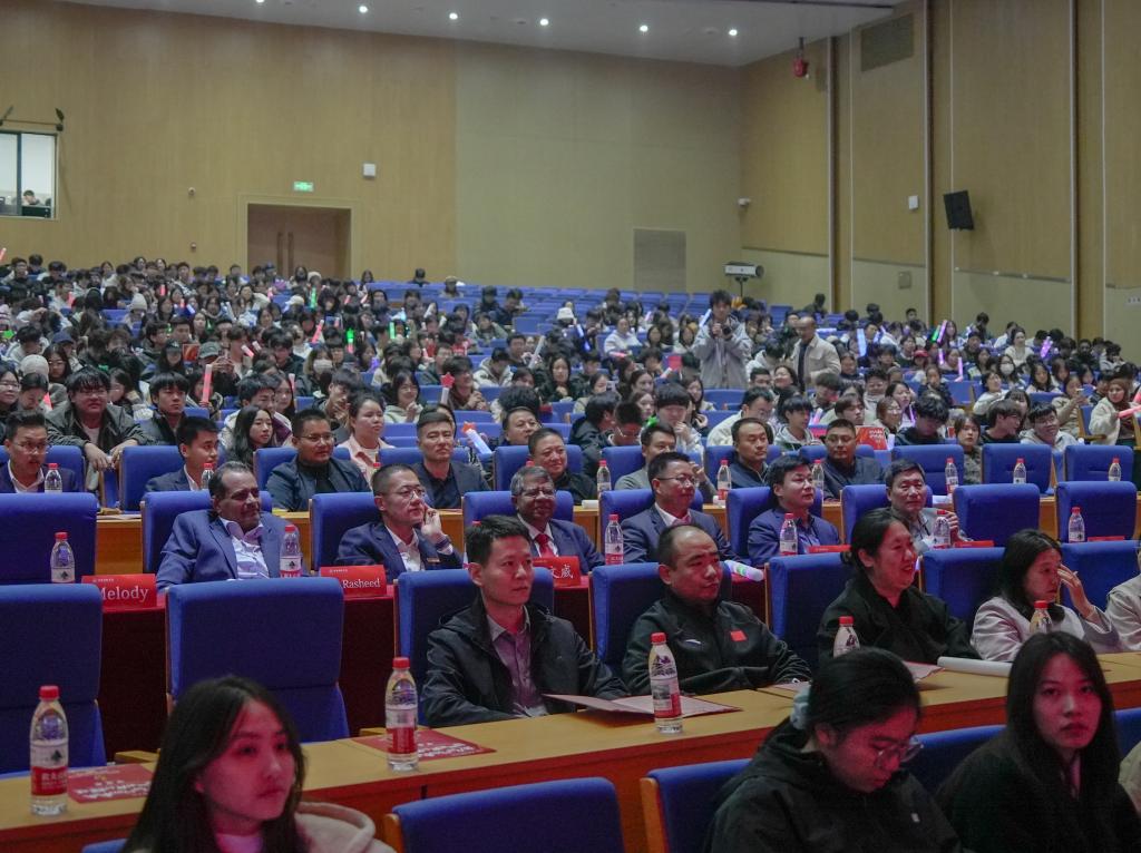 江科网讯(通讯员 林钡 陈冉)秋光正好,山海相逢;青春启航,国际同行。11月17日晚,蓝海大剧场内灯光璀璨、氛围热烈,2025年国际教育开学第一课暨迎新晚会在此举行。校党委副书记、纪委书记夏拥华,副校长兼博雅国际学院院长吕文威,马来西亚林肯大学学院创办人Dr.AmiyaBhaumik等领导嘉宾出席活动,与中外新生共同奔赴这场青春盛会。