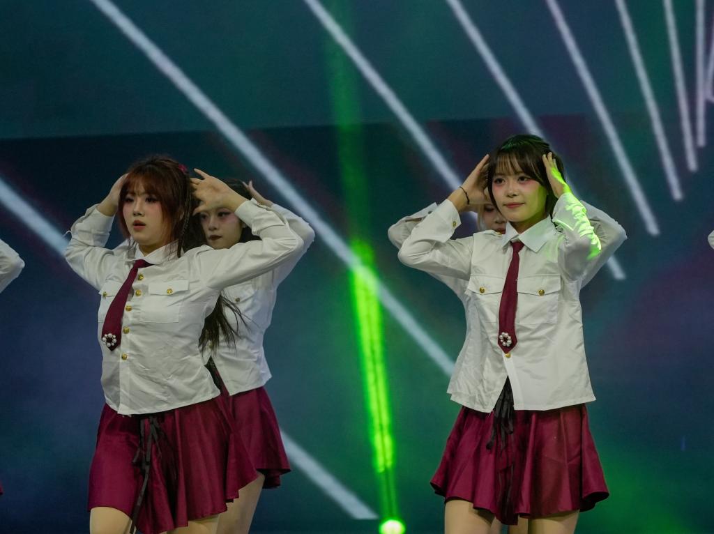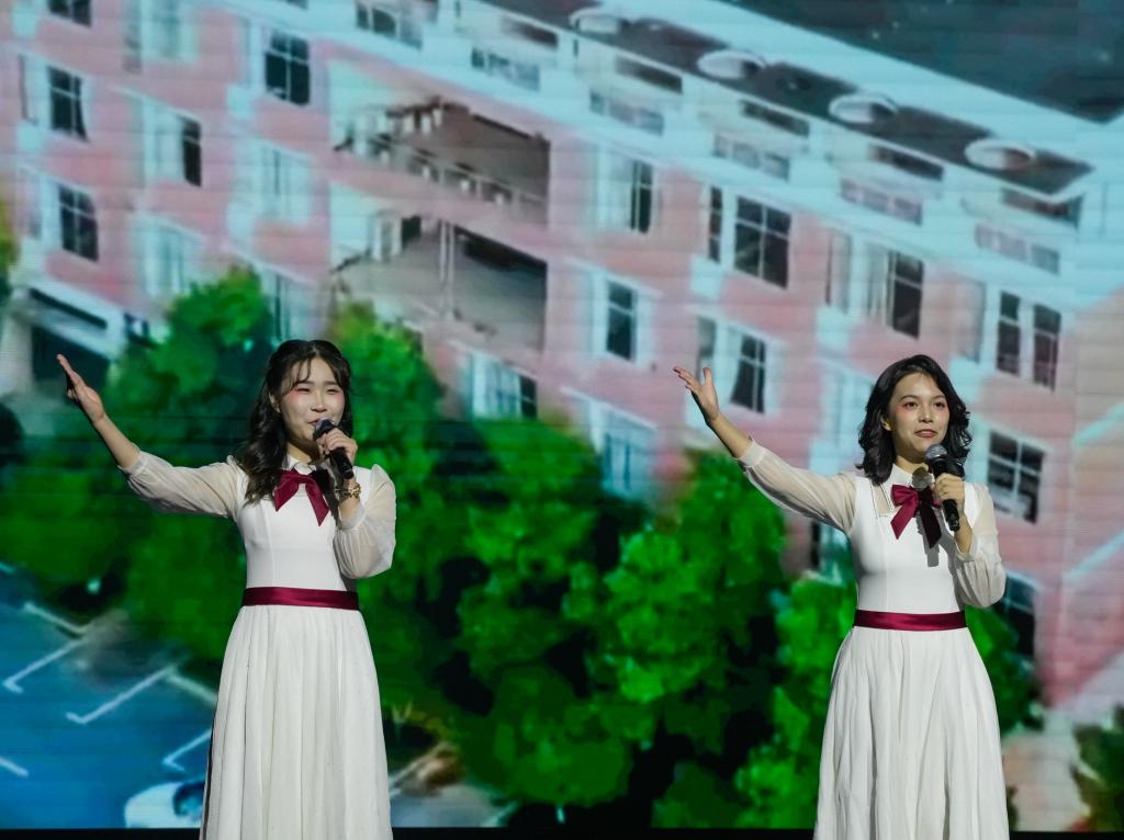 开学第一课以“赋能全球胜任力”“与最好的自己对话”为核心方向,通过专题分享为新生锚定“扎根中国、走向世界”的发展坐标,注入成长信心与前行动力。当晚,“聚力同行向未来,国际教育创辉煌”主题迎新晚会接续上演。舞台上光影流转、精彩纷呈,三大篇章层层递进,细腻勾勒出“融汇古今、对话中外”的青春长卷。“星基蓝图・梦起逐潮”篇章以梦想为底色,爵士舞《Sportscar》、语言节目《青春向光,奔赴山海》、舞蹈《遗失的心跳》《入画江南》等点燃青春激情。“巨擘徐图・拥抱世界”篇章聚焦文化融合,中国经典民歌《茉莉花》、走秀《AuraRunway》、歌曲《MoonRiver》《夜空中最亮的星》等节目展现世界青年风采。“初心不改・再创辉煌”篇章汇聚中外力量,唱跳《DiurnalEcho》、歌曲《Perfect》《Countingstars》《不忘初心》、舞蹈《we touch,we go up》等节目表达共赴美好未来的愿望。