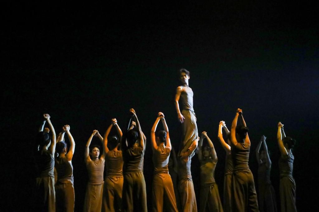 演出以《师・承》开篇,舞蹈教研室教师与学生相携登台,舒展的肢体与默契的配合,既完成了“技艺传递”的意象表达,也奠定了“薪火相传”的基调。紧随其后的技巧组合《传薪》,以交错的师生身影、相照的舞台灯火,将“桃李春风共一堂”的场景具象化,舞者们腾跃时的默契托举,恰如技艺与精神在代际间的流转。