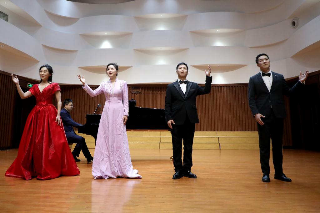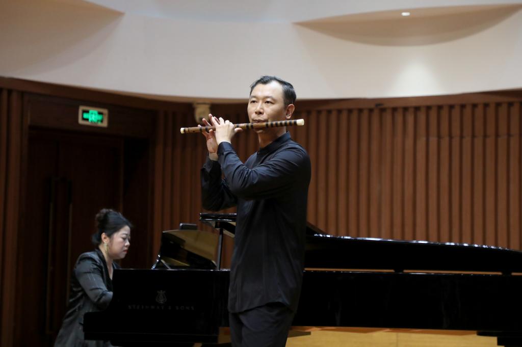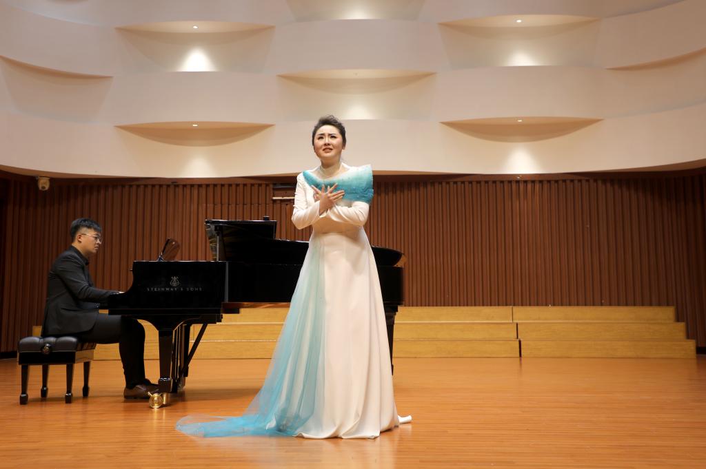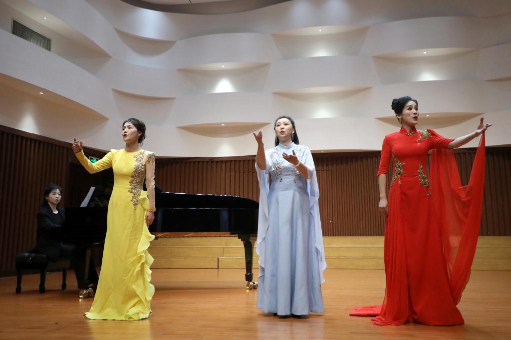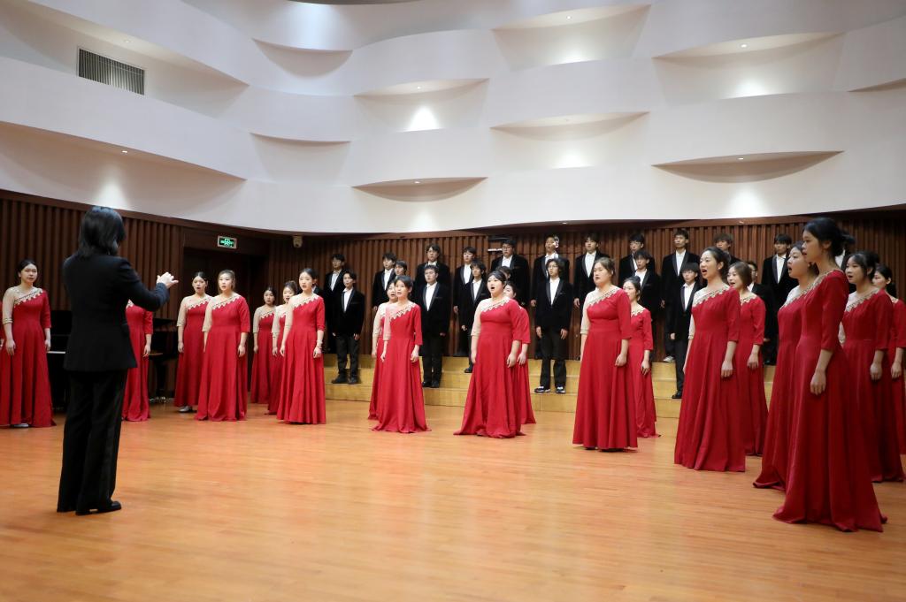 当晚,音乐会以管乐合奏《兵马俑》拉开序幕。刚劲的节奏一响起,便让现场观众沉浸在浓郁的艺术氛围中。紧随其后,钢琴独奏《阿贝格主题变奏曲》、男女声二重唱《复仇二重唱》、古筝独奏《晨兴》、女声三重唱《青玉案・元夕》、独唱《雷火中的笑容》、竹笛独奏《秦川情》、男女声四重唱《城南送别》、民乐合奏《望岳》、独唱《快给大忙人让路》、无伴奏合唱《Nyon Nyon》等曲目作品依次登场,古典与现代风格交织,民乐与西洋乐碰撞。音乐会的尾声,全体教师与合唱团共同唱响《因为信仰》,在集体和声里汇聚成磅礴力量,灯光亮起时,现场掌声久久未歇。