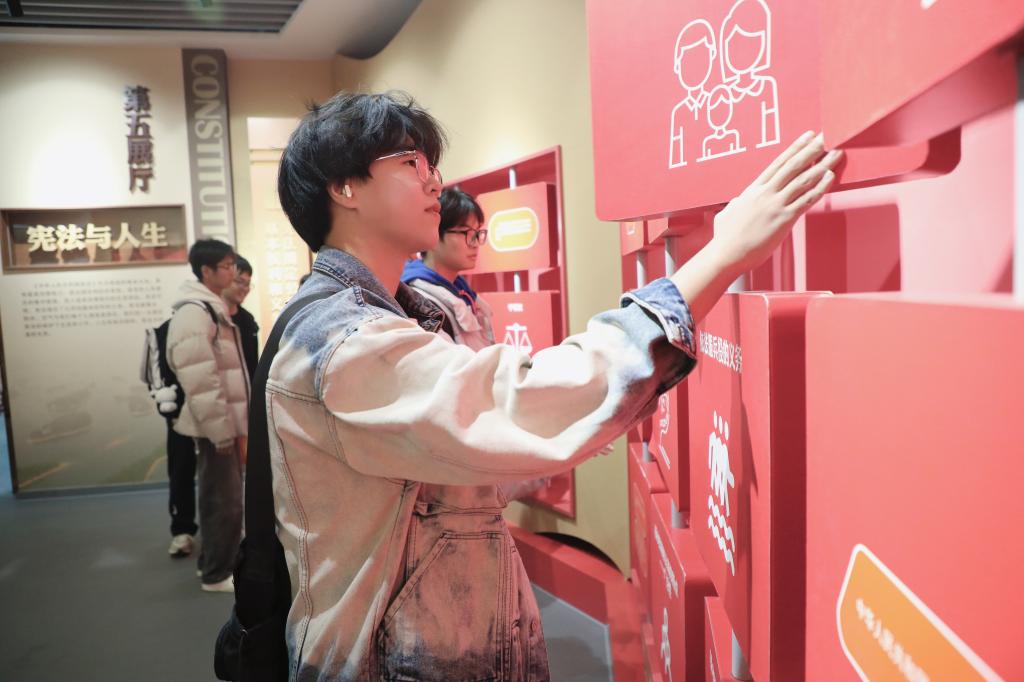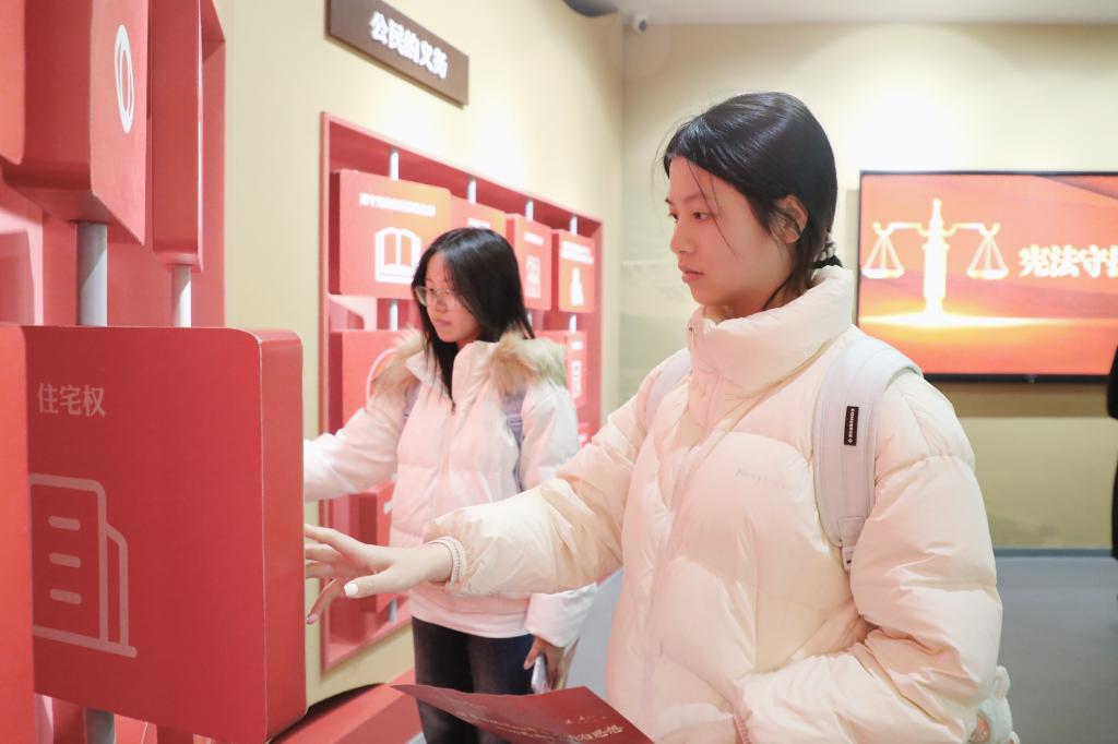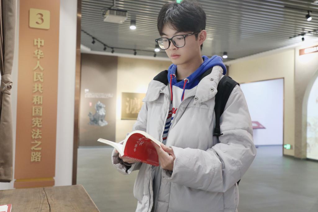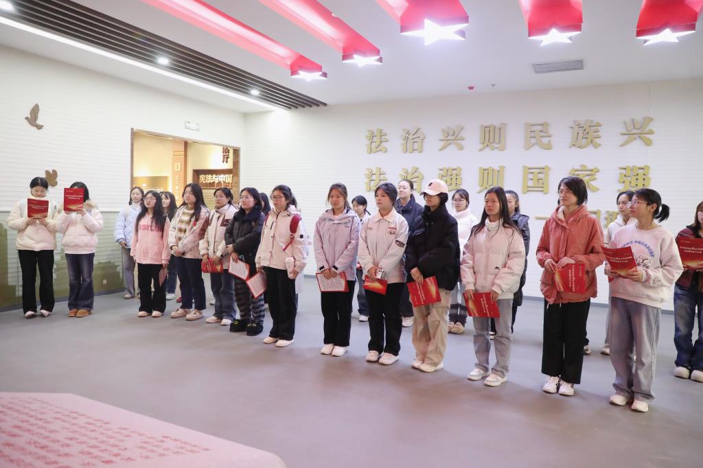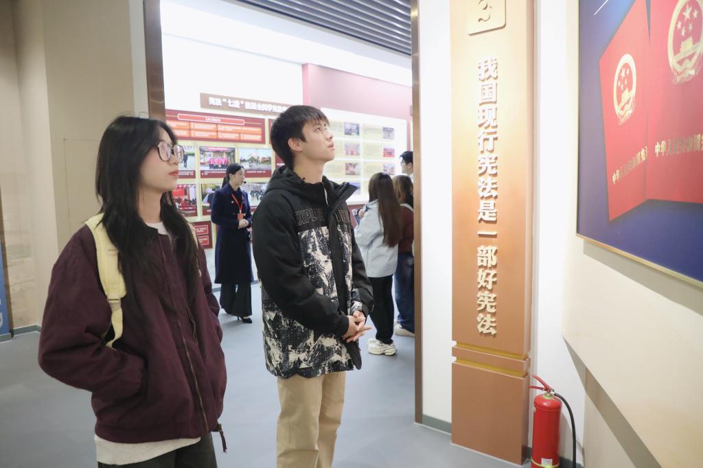 诵读仪式后,师生代表有序前往宪法馆参观学习。在讲解员的引导下,大家通过图文展板、实物陈列等多种形式,系统了解我国宪法的发展历程、核心内容以及宪法在治国理政中的重要作用,直观感受宪法作为根本大法的威严与温度。现场师生纷纷表示,此次参观让抽象的法律条文变得具体可感,进一步强化了自身的法治意识与责任担当。