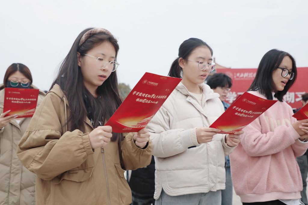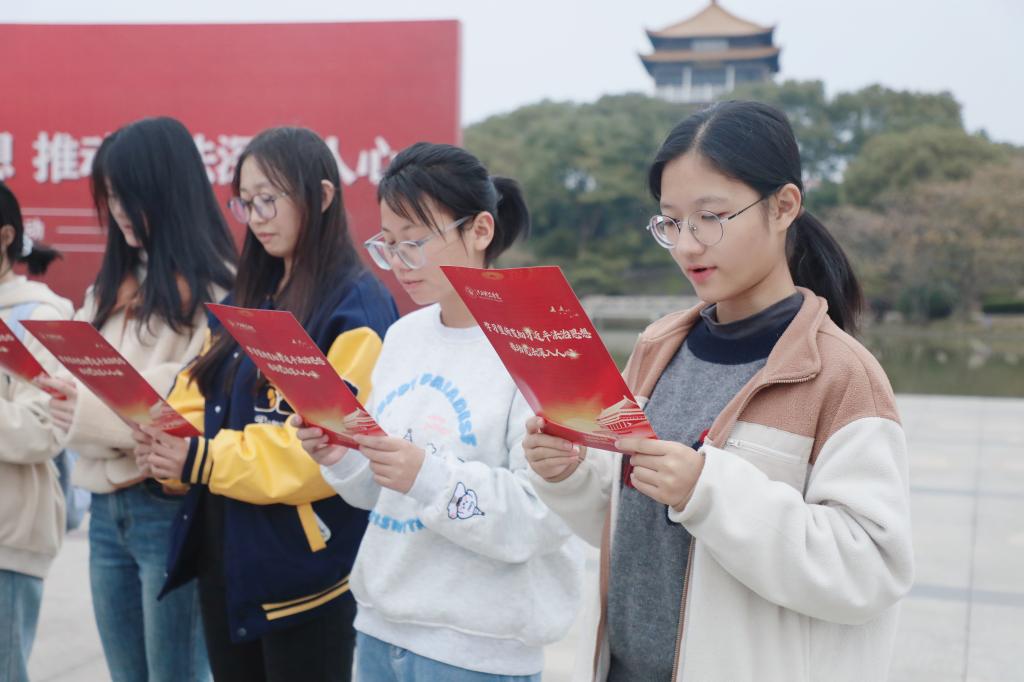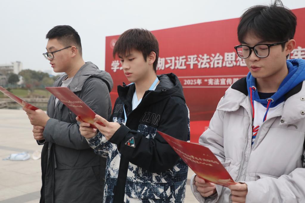 活动现场,师生代表手持宪法文本,神情肃穆。“中华人民共和国的一切权力属于人民……”铿锵有力的诵读声回荡在广场上空,字句间饱含对宪法的尊崇与敬畏。集体诵读环节不仅让师生重温了宪法的核心条款,更在朗朗书声中深化了对“依宪治国、依宪执政”理念的理解。